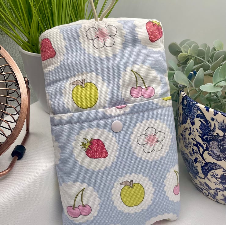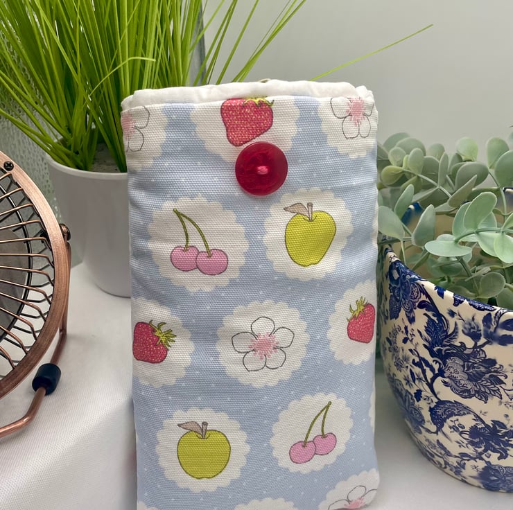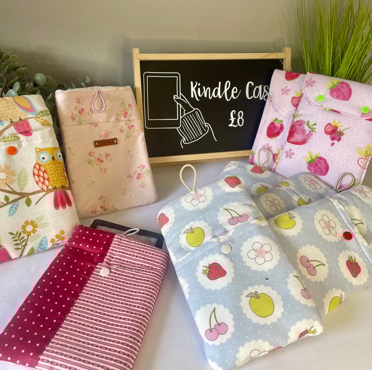 These lovely book sleeve/Kindle cases are hand made with predominantly recycled materials. Lots of people love these when travelling. Some parts have newly sourced materials (e.g., buttons, thread, wadding and hair ties etc). It is 7.5 X 5.5 inches (Approx.) This has a pocket on one side for additional items such as pens, notebooks or snacks. This will hold a small book but has been specifically designed for standard sized Kindles (15.5cm x 11 cm). Please check measurements of your device before ordering to ensure fit.