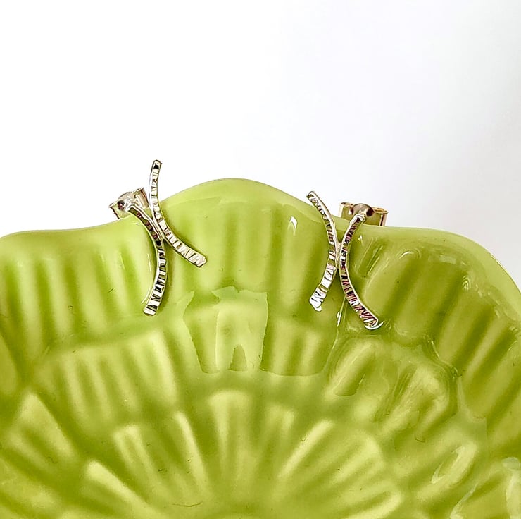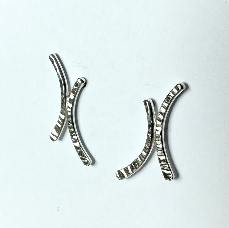 These sterling silver hammered kiss earrings are simple but elegant, perfect for everyday wear or saved for a special occasion. I make each one individually from wire, which I form into a kiss shape and the natural bark effect texture is added by using a riveting hammer, making every one unique and when polished these really do sparkle as they catch the light.