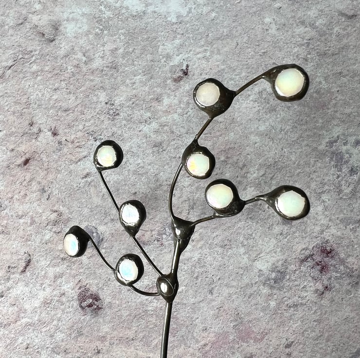 A delicate gypsophilia (baby’s breath) stem for an everlasting bouquet of leaded glass flowers.