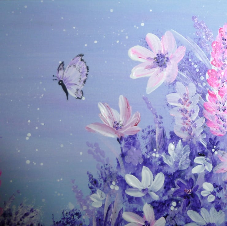 art painting original acrylic fantasy purple floral garden ( REF FA 391 C1 )