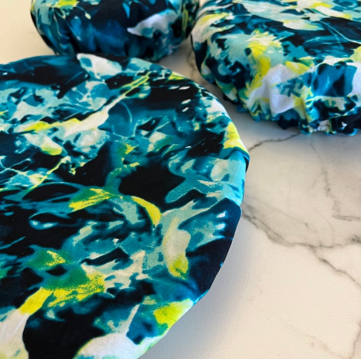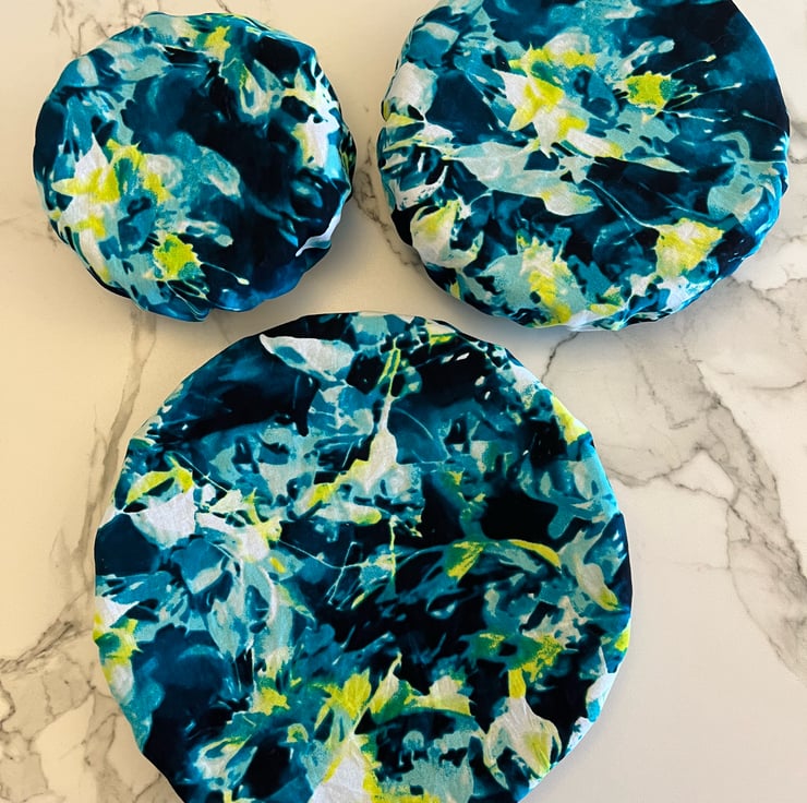 Ditch the plastic and cover your bowls in style with this charming set of reusable bowl covers. Handmade from soft authentic African cotton and fully lined for durability, each cover features a snug elastic edge to fit securely over bowls of various sizes.