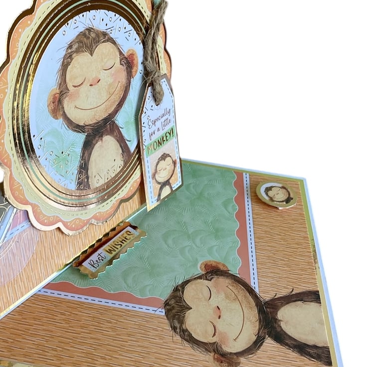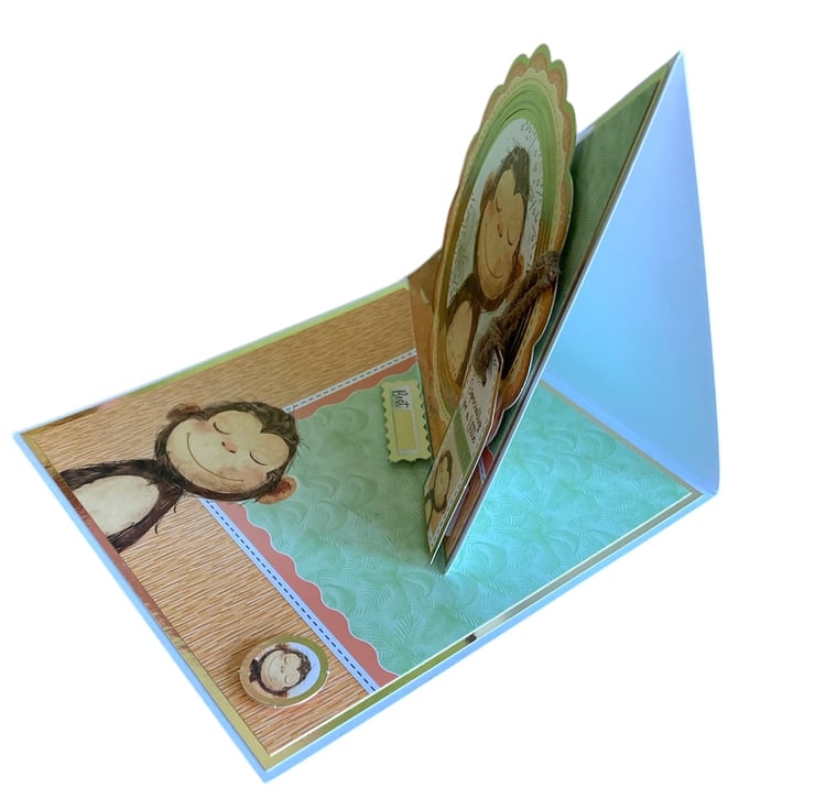 This monkey pop up twisted easel card from Koko Blue Crafts is a lovely way to wish Happy Birthday to a special child.
