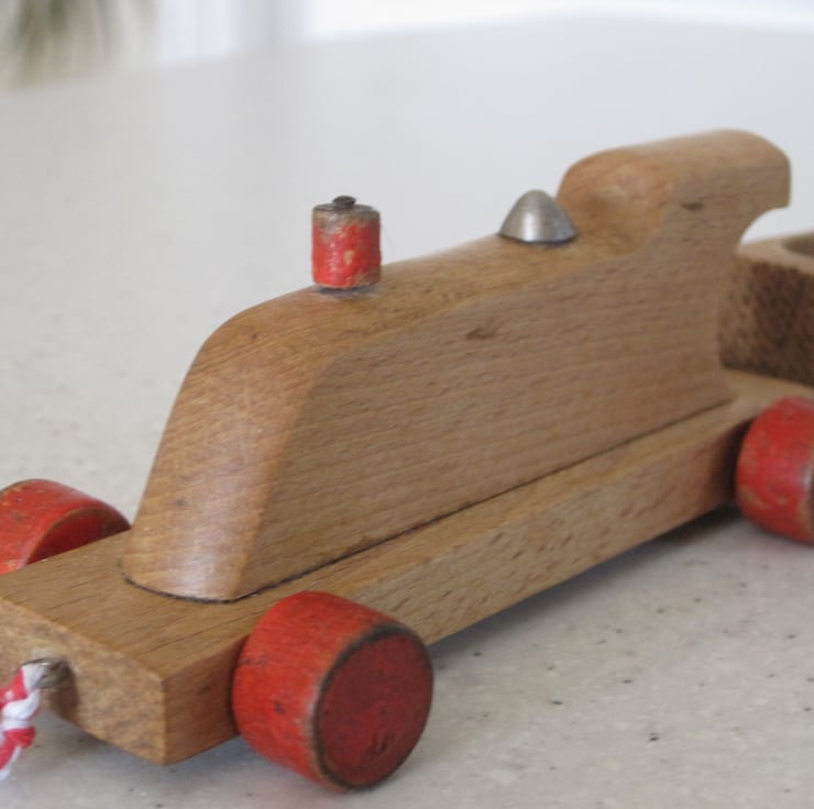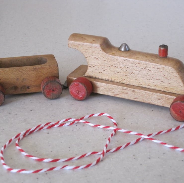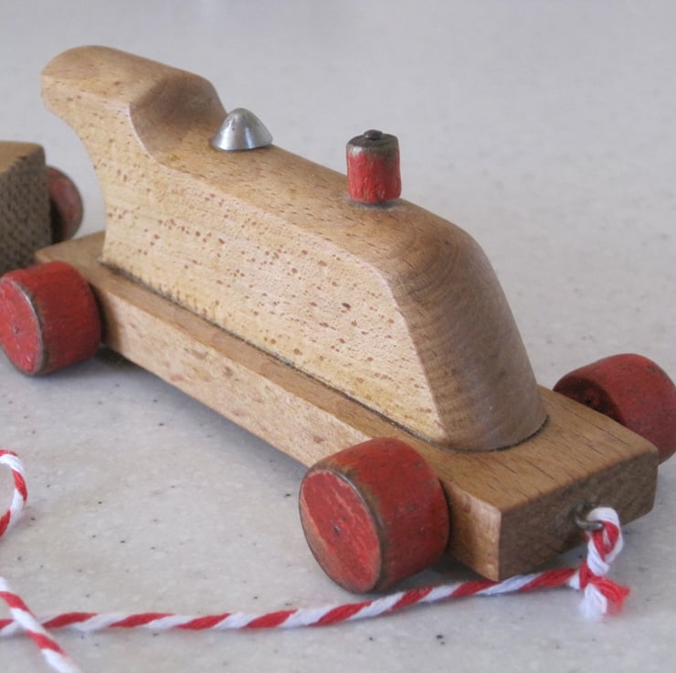 The toy train came from the same house as the restored Victorian Mirror, it was a family heirloom no longer required and in a very poor and dirty condition. We bought the train and sympathetically restored it and added the pull string.