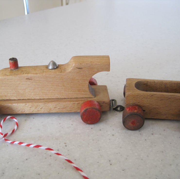 With its warm tones, tactile wood grain, and carefully preserved form, this enchanting toy train makes a meaningful keepsake or display piece.