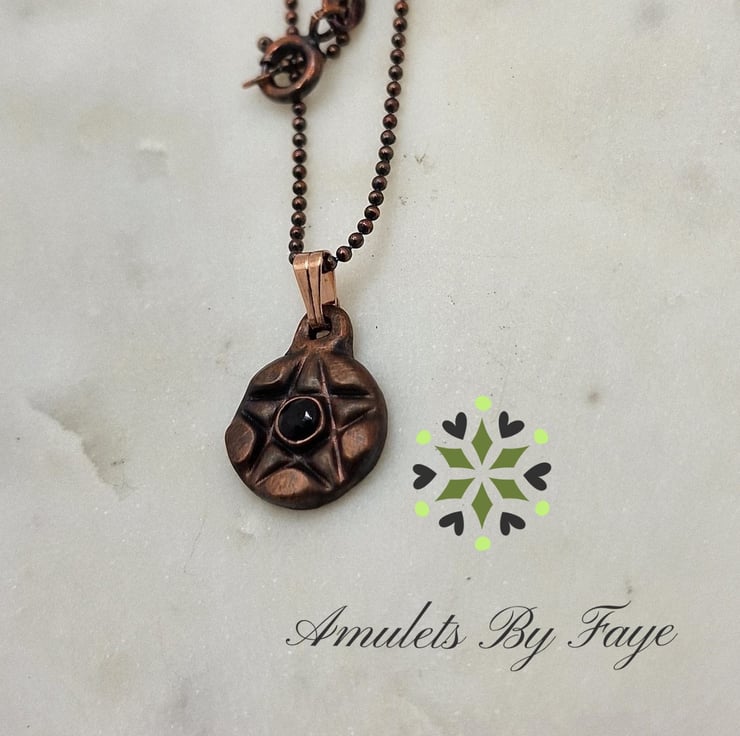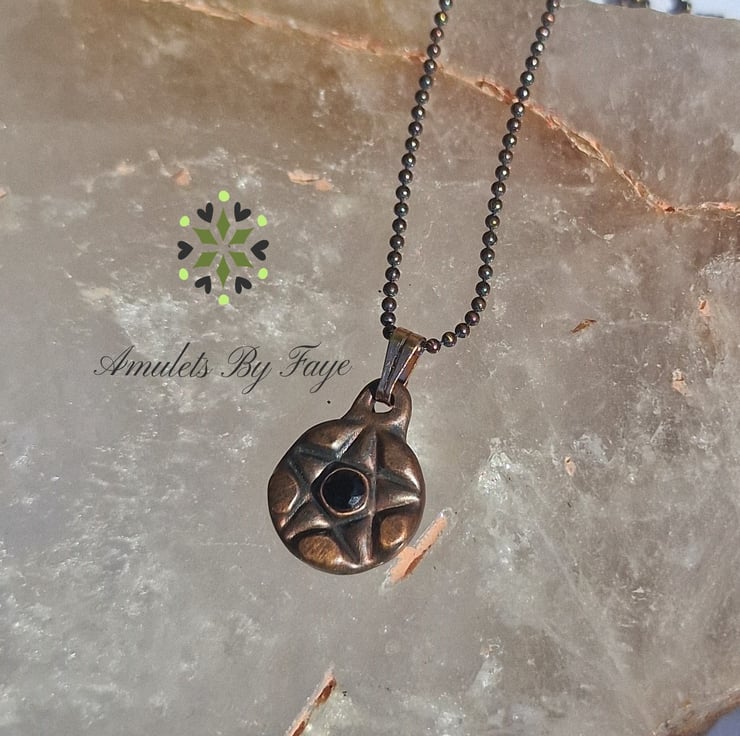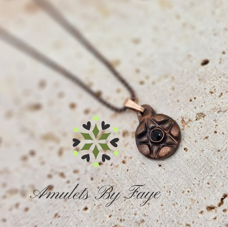 Recycled Small Copper Pentacle Pendant with Black Spinel Gemstone Necklace.
