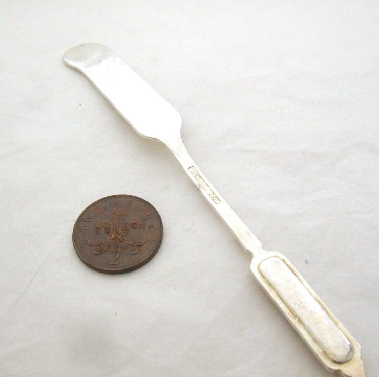 The spreader is approx. 15.5cm long. Hand washing recommended as I can't be certain the ceramic part is dishwasher-proof and anyway the (nontoxic, waterbased) acrylic pigment in the lettering will last a lot longer if you treat it gently.
