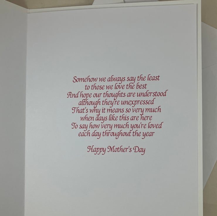 The card measures approximately 17.5cm x 12.5cm (7 inches x 5 inches) and comes with a white envelope, in a sealed wrapper.