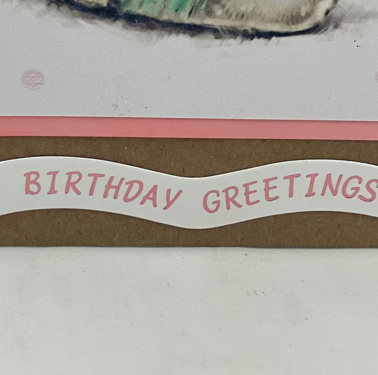 The foiled sentiment banner reads: 'Birthday Greetings'.