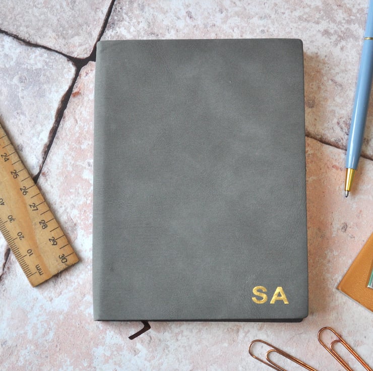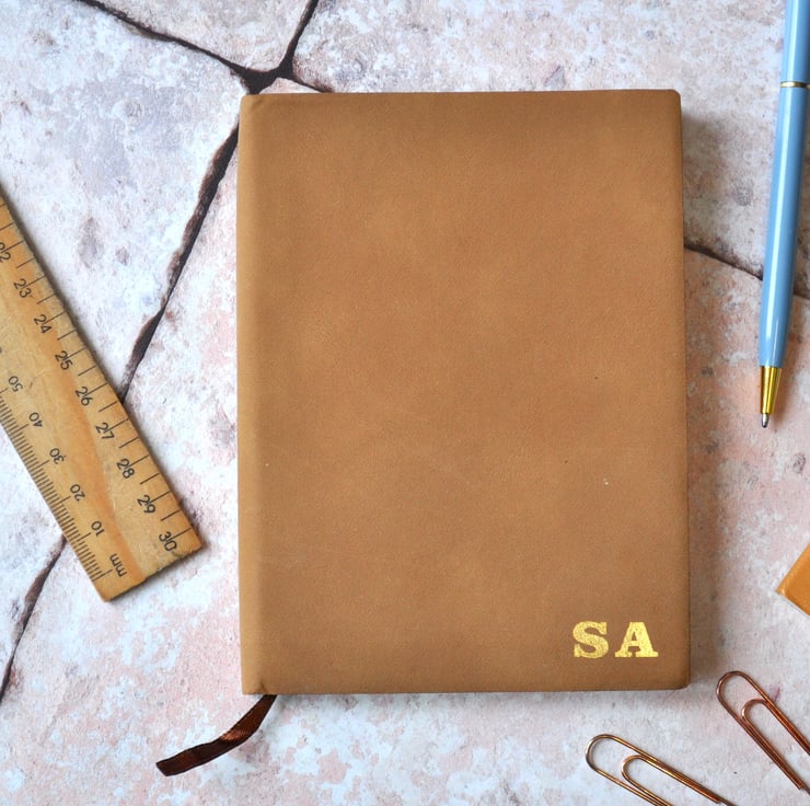 A personalised inital leather notebook. Ideal for notes, ideas or planning.