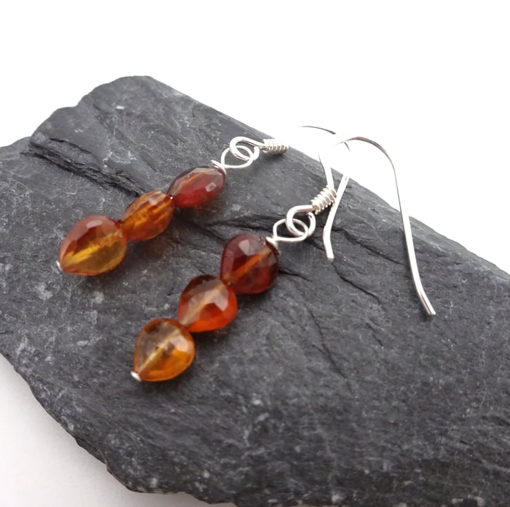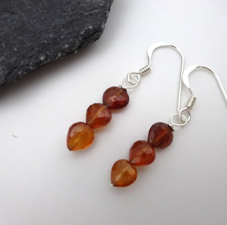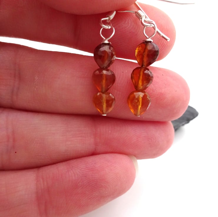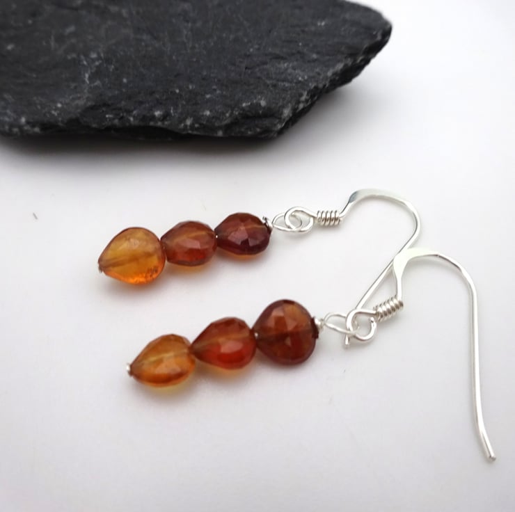 A pair of sterling silver earrings featuring Spessartine Garnet gemstone beads.