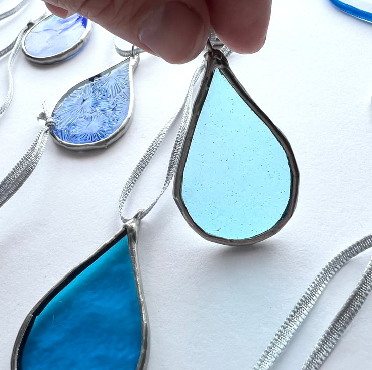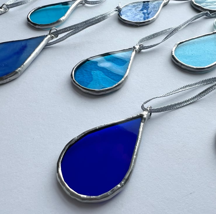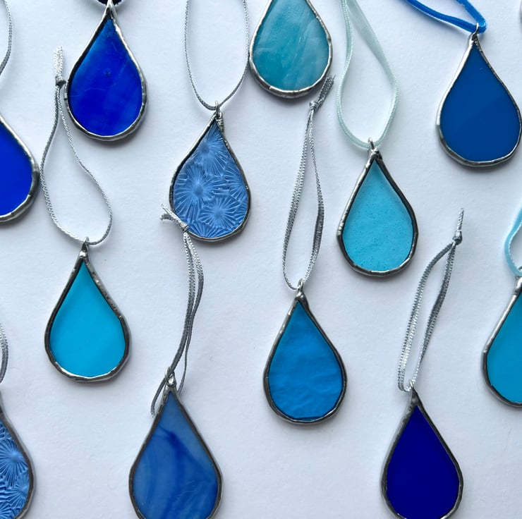 Each raindrop is an affordable, highly individual piece of stained glass - I can only ever make 2 out of each glass sample so you are guaranteed a limited edition or completely unique piece!