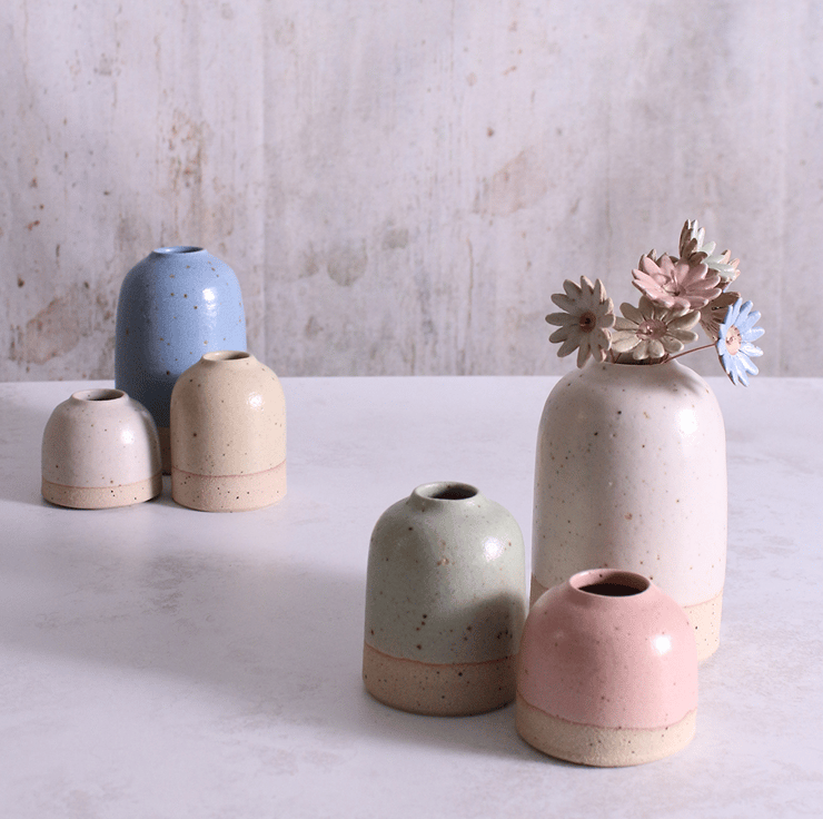Our ceramic flowers will fit into our medium, small or mini vases which are available in our five unique glaze colours. Please see our blog post for styling tips.