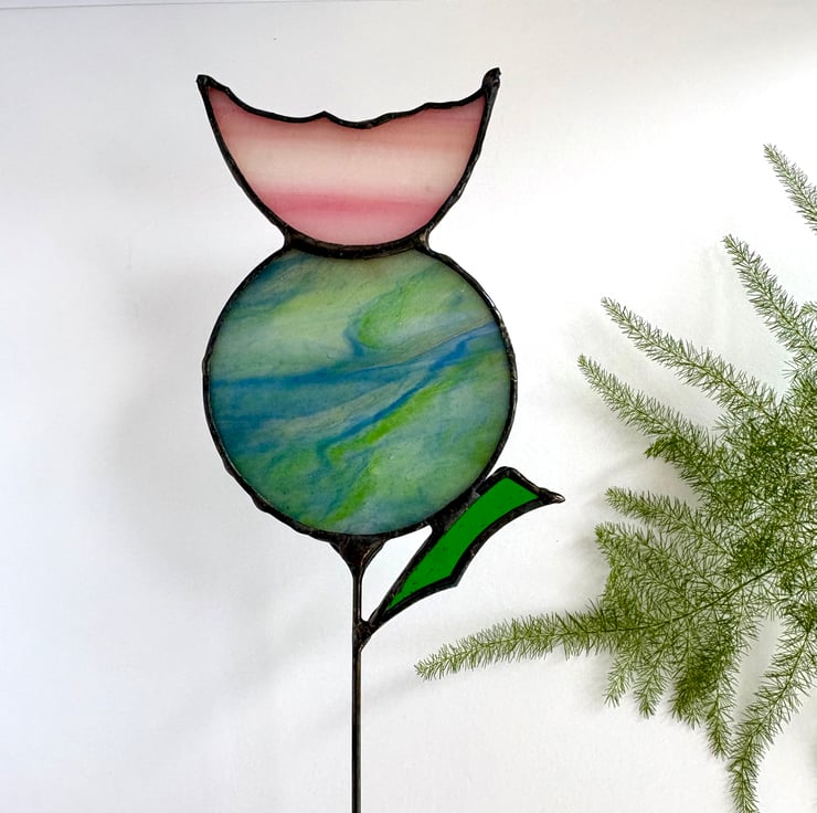 This stained glass thistle stem has been handcrafted using traditional stained glass Tiffany technique with lots of care and great attention to detail. It has been inspired by the strength of the Scottish flora which I am very lucky to have on my doorstep.