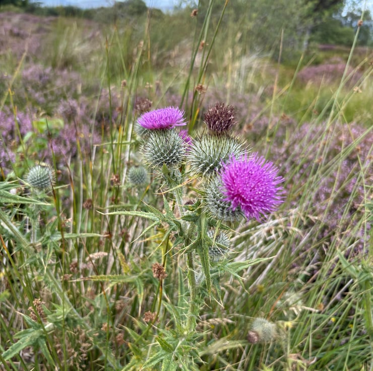 Stained glass Scottish Thistle stem, Everlasting wildflower stem, Flower stem