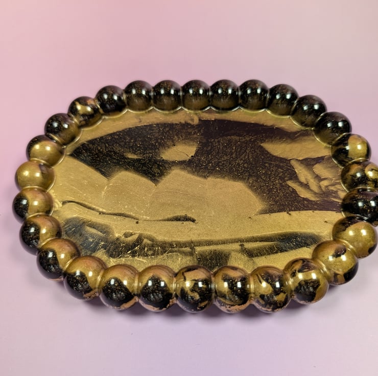 A bold and elegant resin dish, handmade using layered pouring techniques to create a rich marble effect.