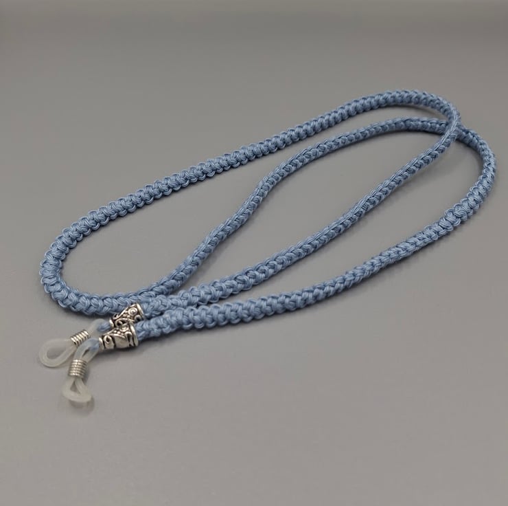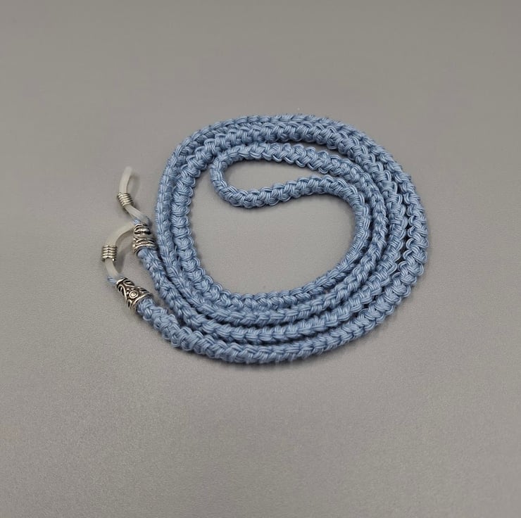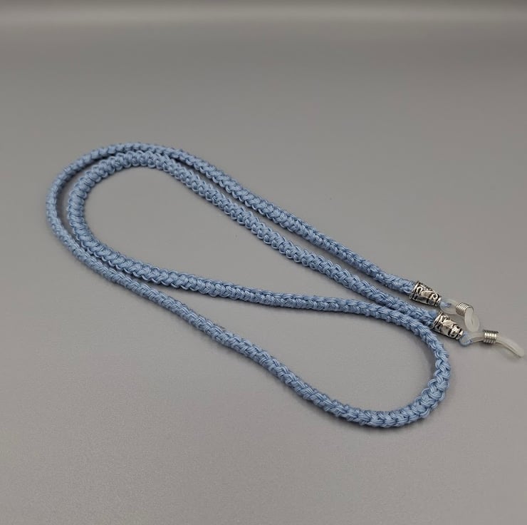 Light blue colour cotton cord for glasses with nice silver colour end bead and white (clear) loop