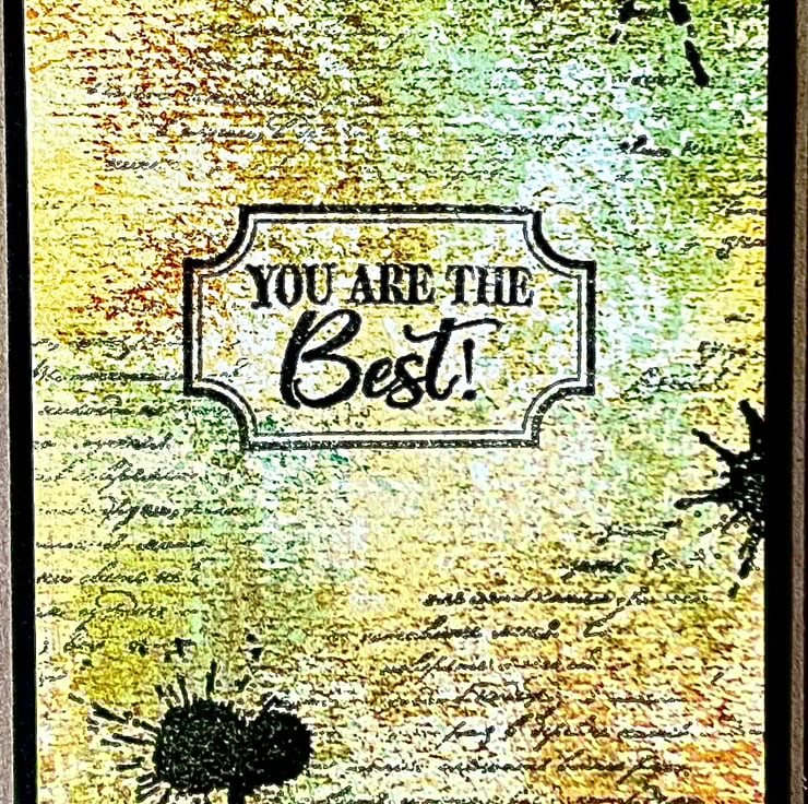 A bold, expressive greeting card that says it all—You Are the Best! This one-of-a-kind design was hand-painted using layers of vibrant inks in sunshine yellow, grassy green, and earthy orange, finished with dramatic ink splatters and vintage text for a splash of spontaneity. Ideal for birthdays, thank yous, or just because—this card makes a striking statement. Blank inside for your personal message.