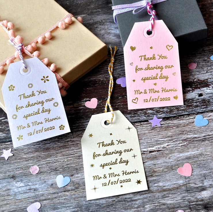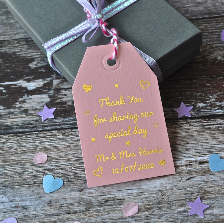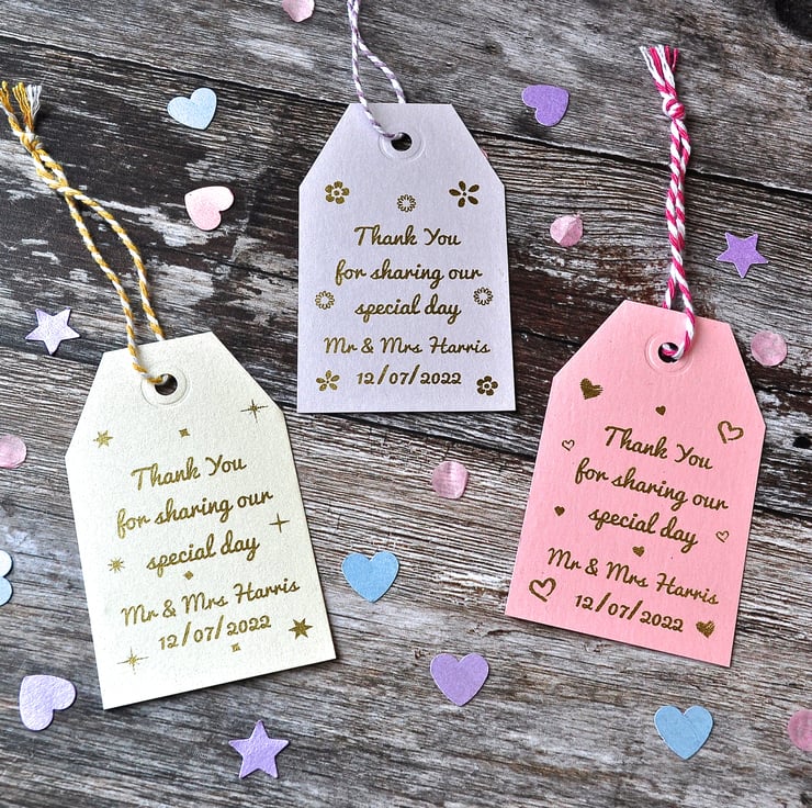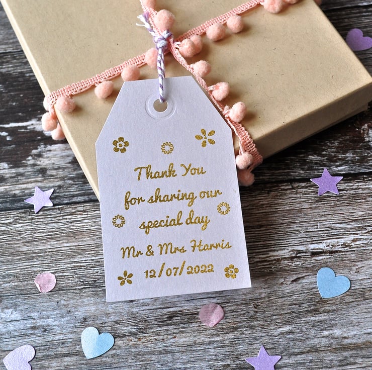You can personalise these gift tags with any message, perfect as a wedding favour gift tag but can be personalised for other parties or for birthday, anniversaries or any other occasion.