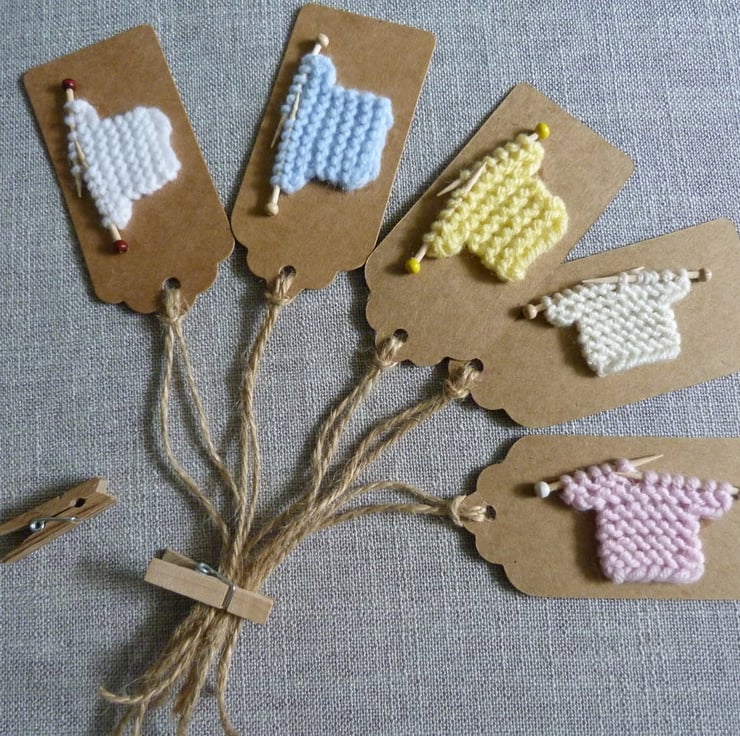 An unusual handmade gift tag to enhance your gifts for a NEW BABY, A CHRISTENING, a KNITTER or any other occasion! Available in more colours (see separate listings).