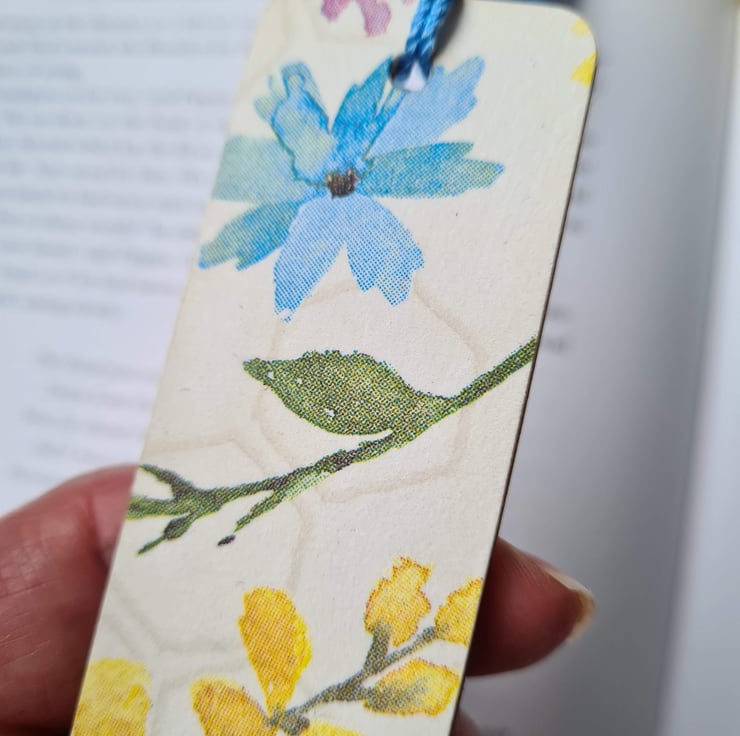 The bookmark measures 12x3.2cm and the design is on one side, the other side is blank wood. As each bookmark is individually decorated, the one you receive may vary slightly from the one pictured, but will be the same design.