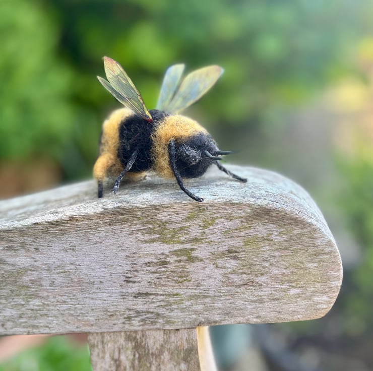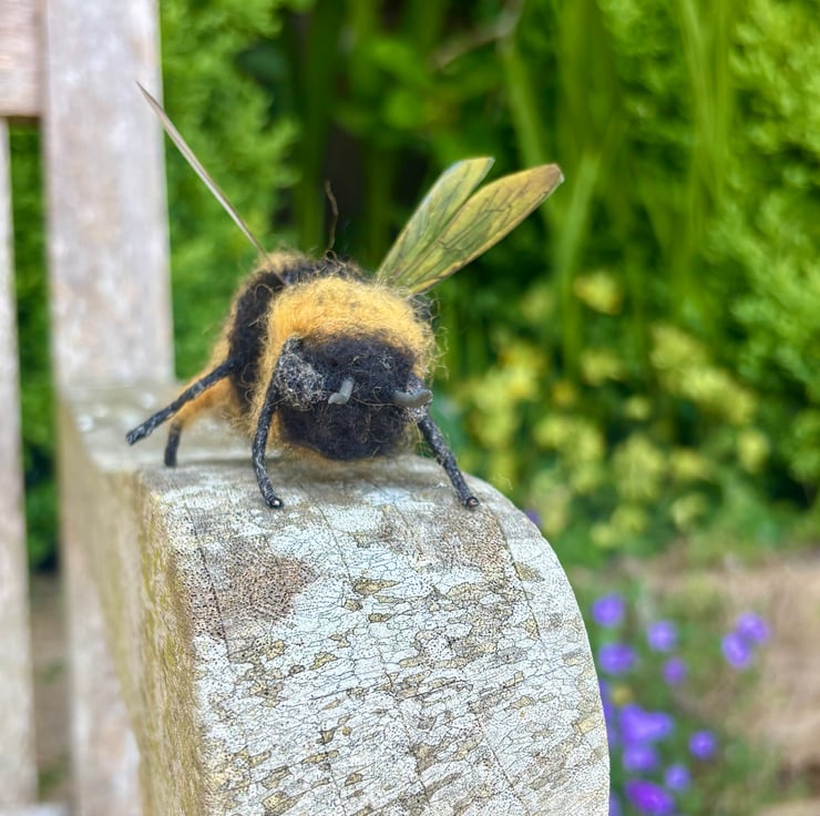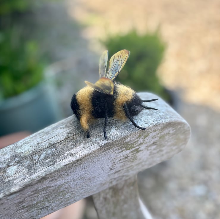 Meet Mr Bumble Bee, made with 100% wool. Needle felted and hand crafted, each one unique and individually. This little bee is approx 7cm long and made with pure wool, wire armature, acetate for the wings