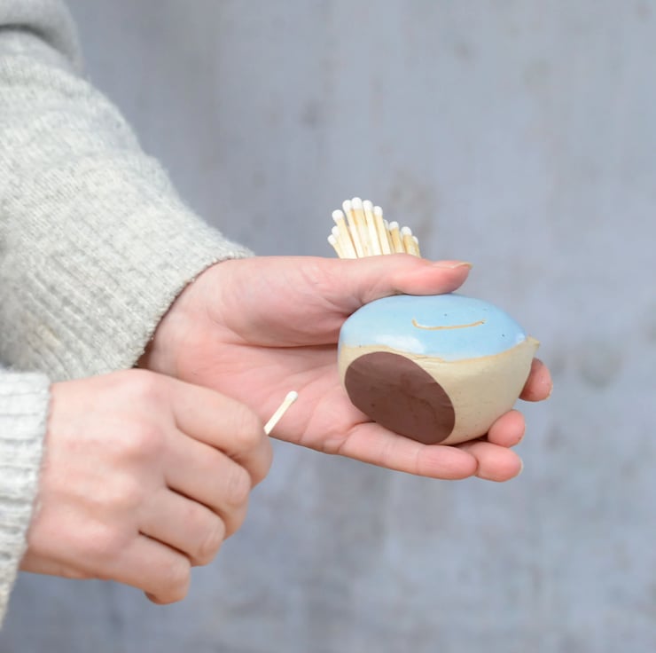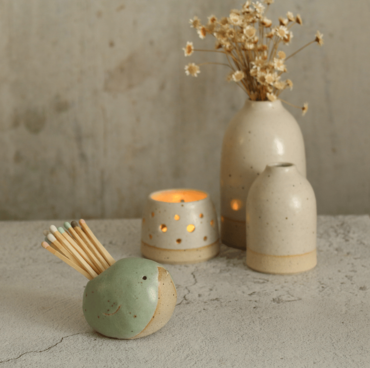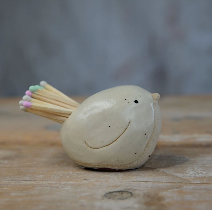Our handmade ceramic bird match striker pot is a great alternative to lighters as matches are bio-degradable. The match holder is a beautiful functional and decorative item for the home. Available in off-white, cornflower blue, pale pink, light yellow and mint green.