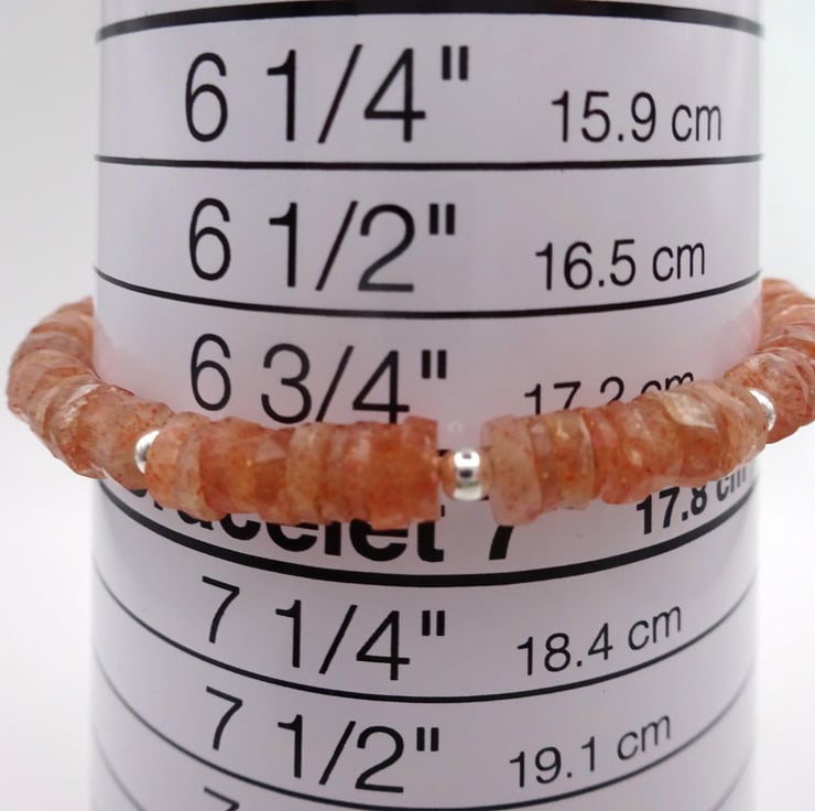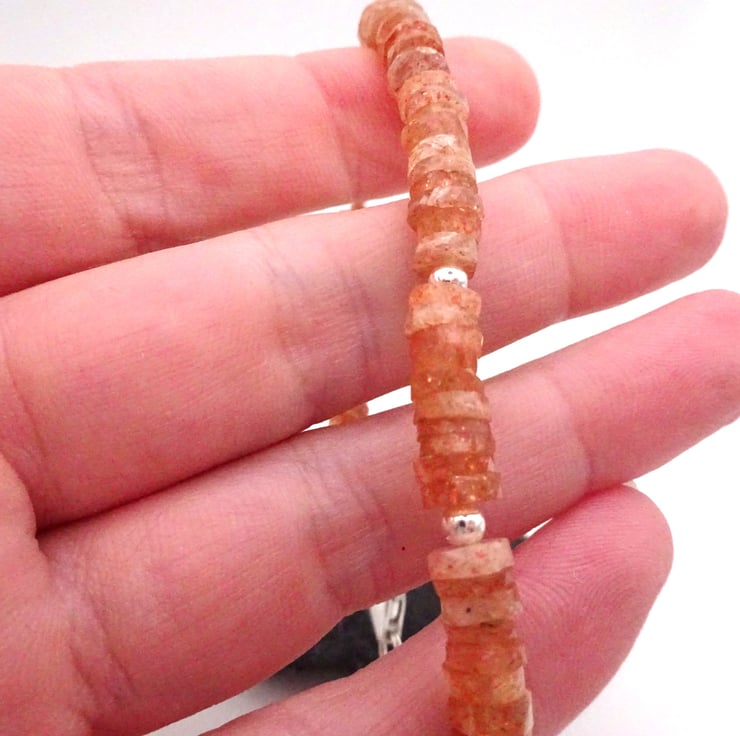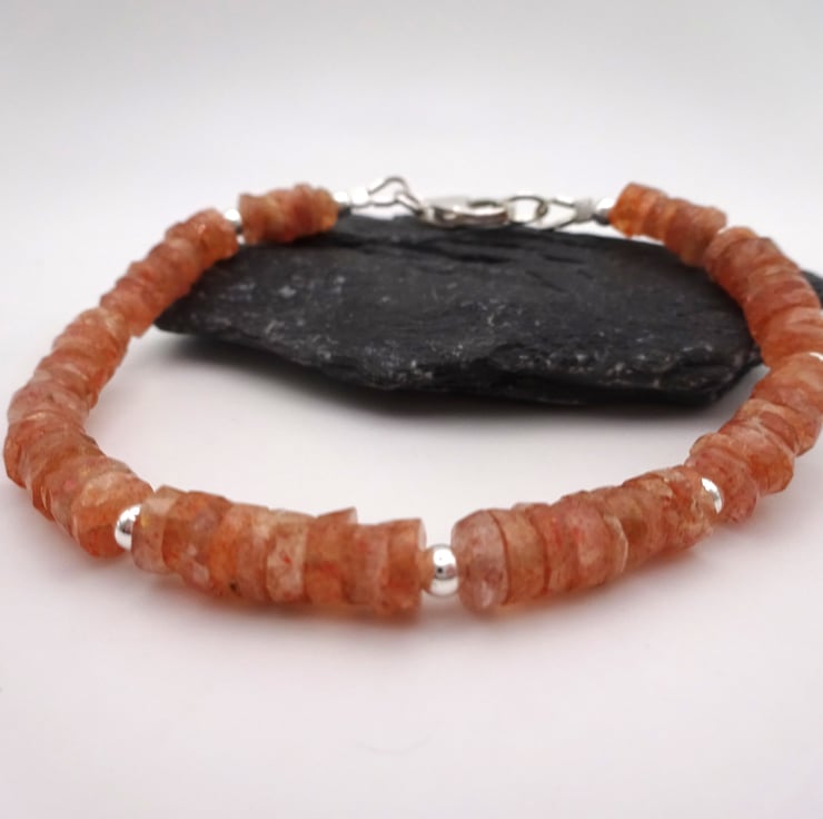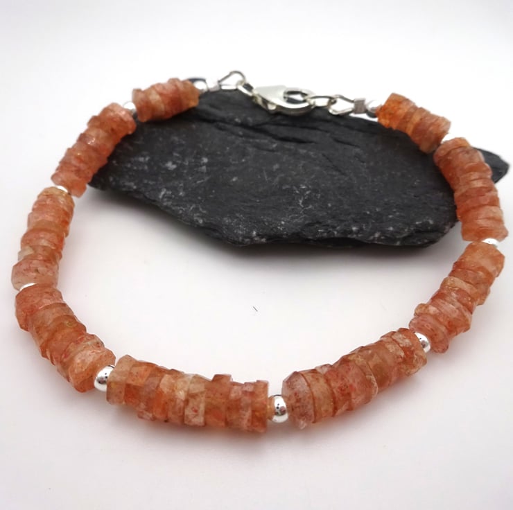 A bracelet strung with Grade AA Sunstone gemstone beads and sterling silver beads.