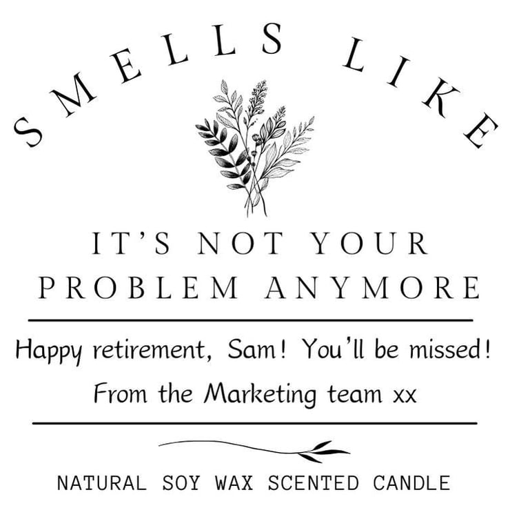 Perfect for retirement gifts for women or men, this funny candle gift is a great way to say goodbye in style. Choose from our best-selling Not Your Problem Anymore design or add your own custom message for a truly unique gift.