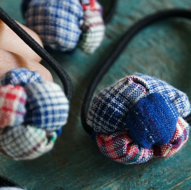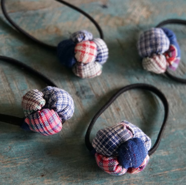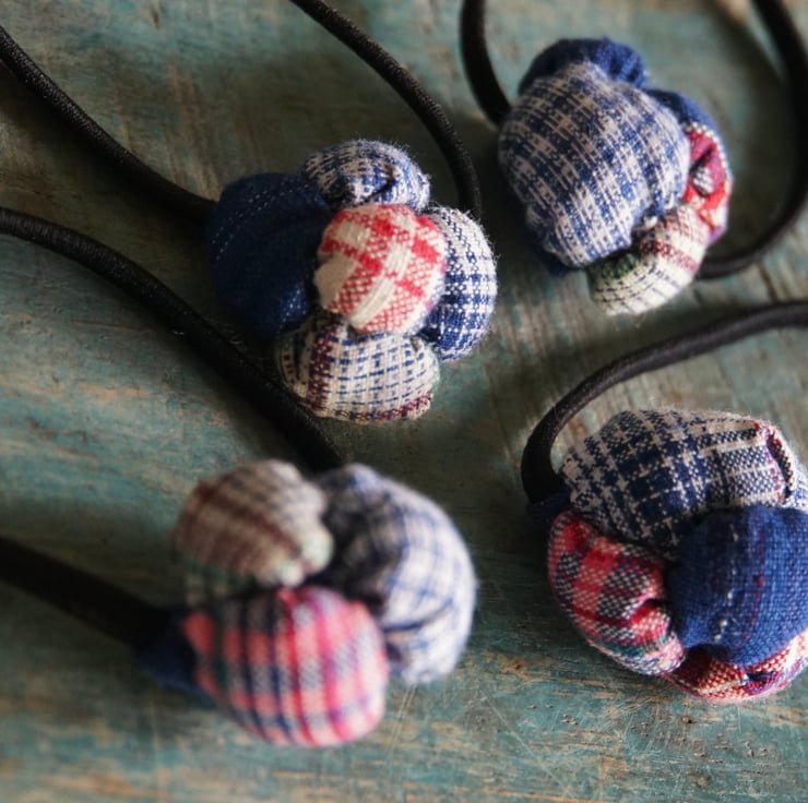 These cutie hair ties are decorated with little fabric balls made from cherished vintage fabric scraps. Each little ball is stuffed with cotton to give it a soft and playful touch. Whether for girls for ladies, these hair ties bring a fun yet elegant twist to your everyday look. None of these hair ties are exactly alike, making them a one of a kind accessory that carries the charm of handmade artistry.