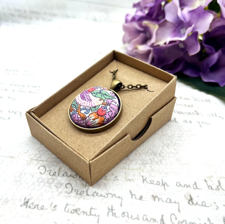 Your pendant arrives nestled in an eco-friendly kraft cardboard jewellery box made in the UK—perfect for gifting to admirers of Pre-Raphaelite art, Liberty London enthusiasts, or William Morris collectors (or as a well-deserved indulgence for yourself).