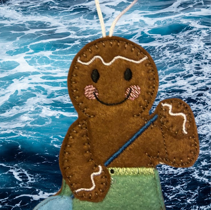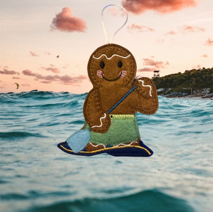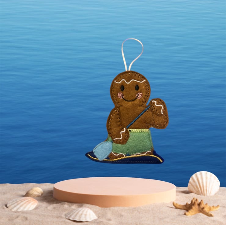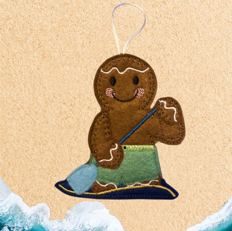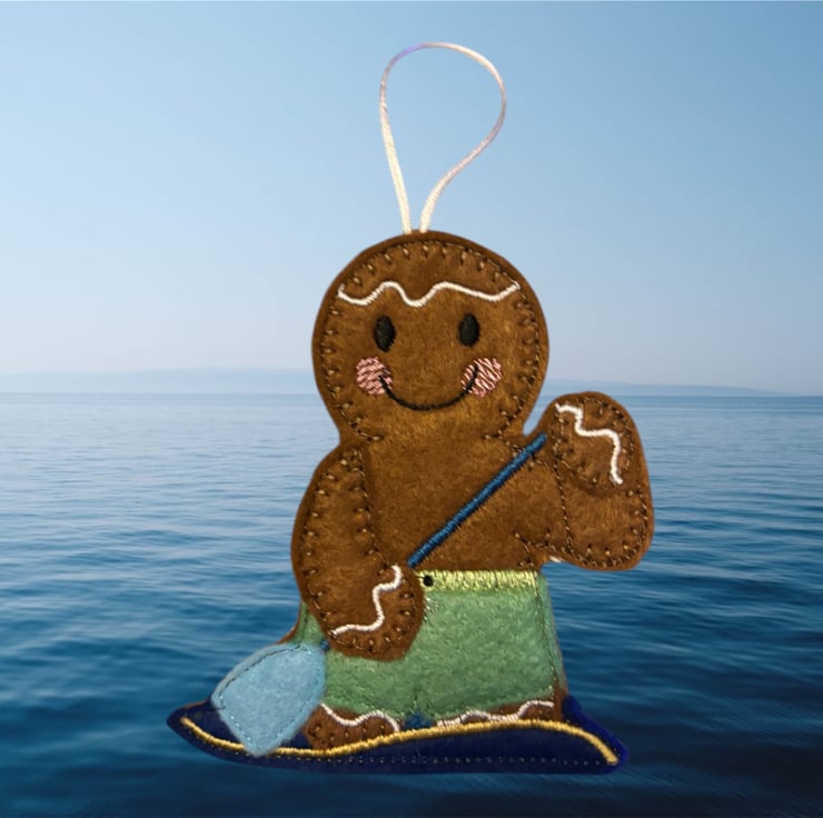Male paddle boarding gingerbread Embroidered Hanging Keepsake