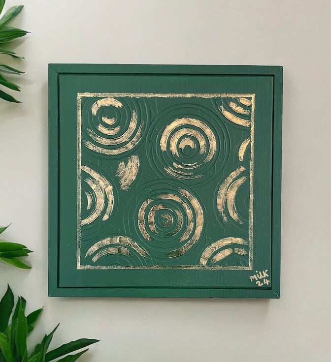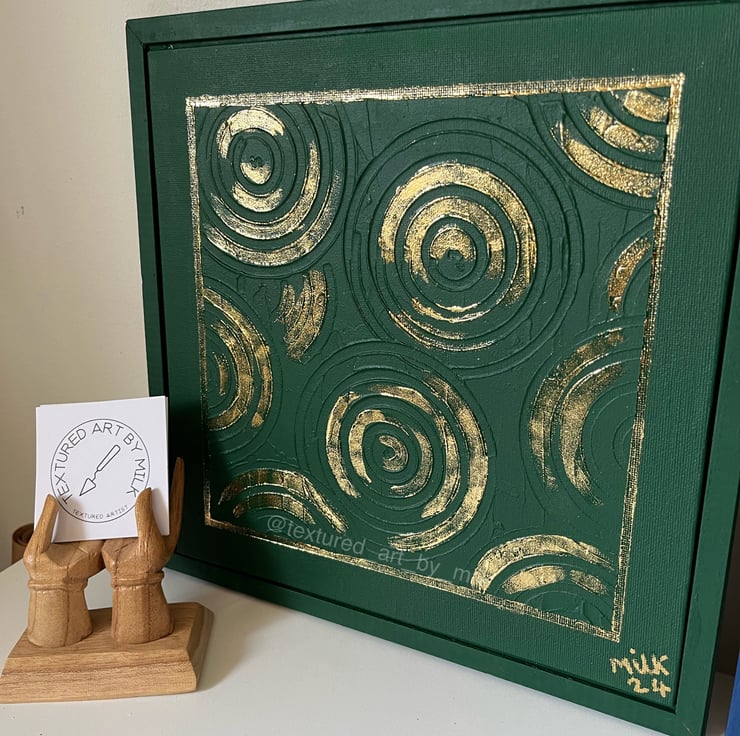 Add some luxurious artwork to your walls with this gorgeous piece with its deep rich colours of forest green with shimmering gold leaf detailing.