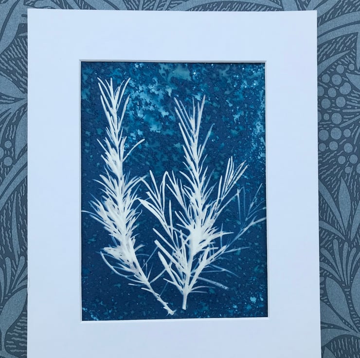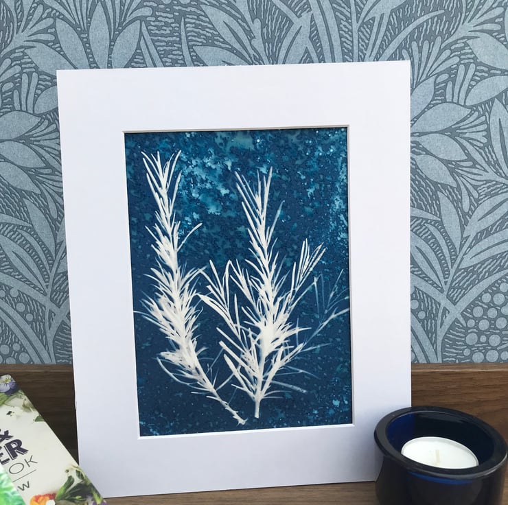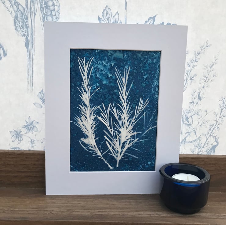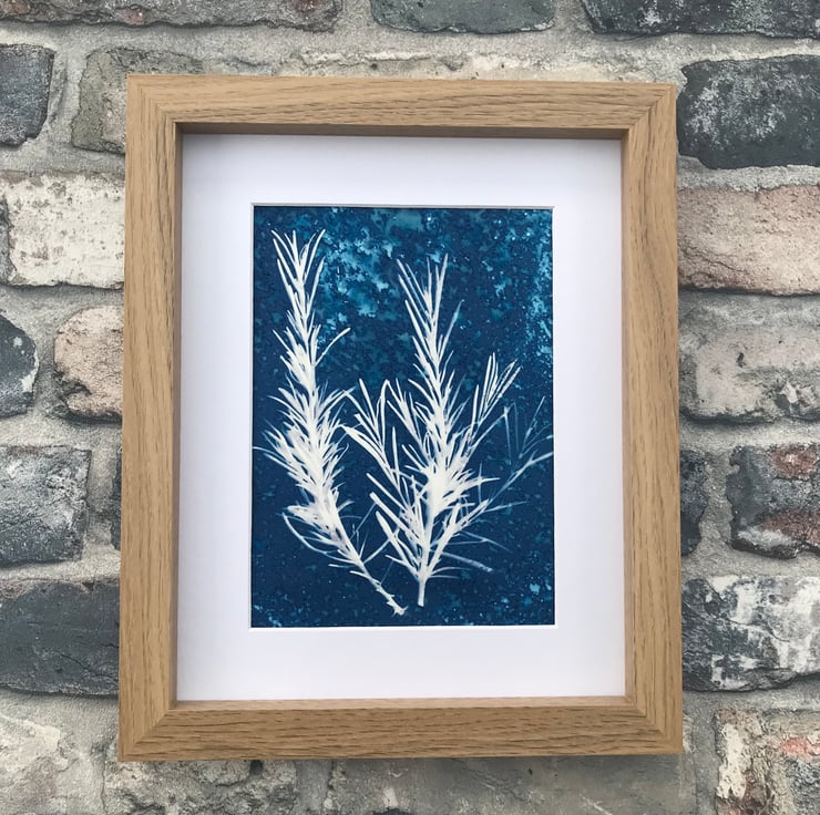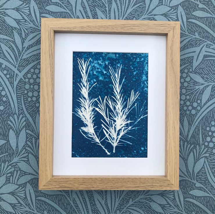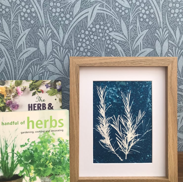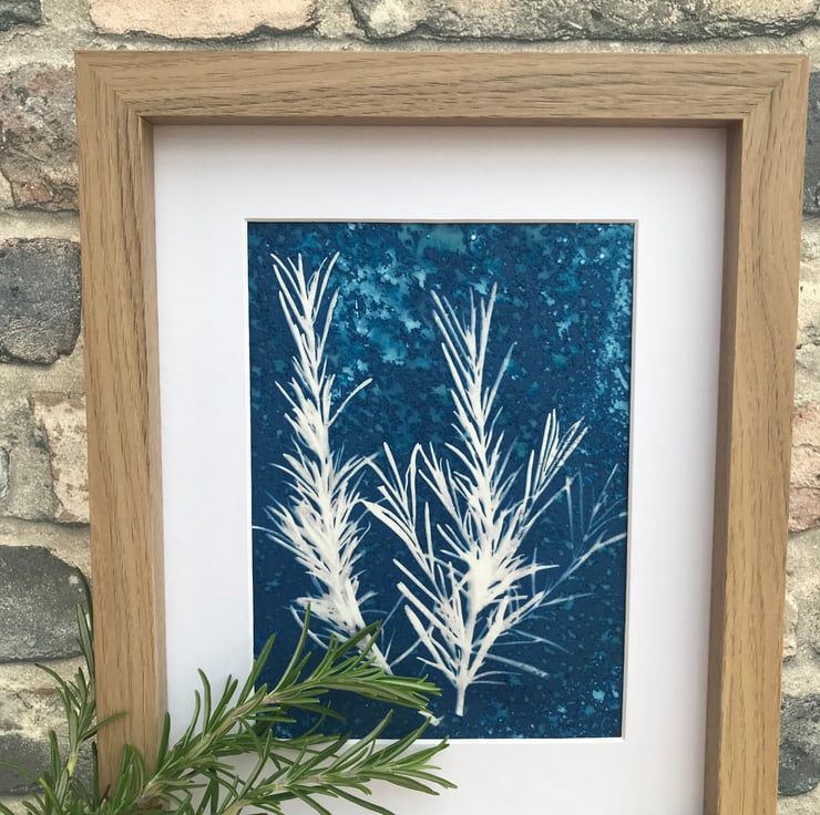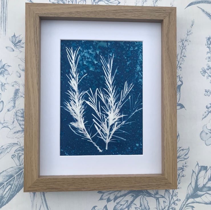 Original Cyanotype Gift, Artful Aromatics- Rosemary-Framed or Mounted