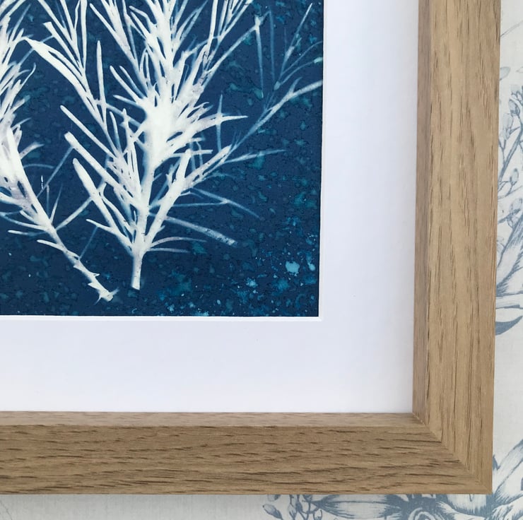 FRAMED photogram, as seen in the photos. The natural oak coloured frame is made from FSC-certified wood acquired from sustainably managed forests.