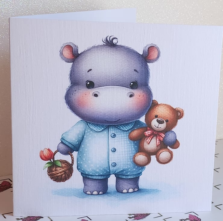 Meet Hugo! An adorable and unique way of congratulating the new parents, Hugo is wearing pj's and holding his very own teddy bear. This 300gsm white linen effect card features my watercolour image of Hugo and is left blank for you to add your own message inside. It comes with a matching envelope and is wrapped in a cellophane card bag.