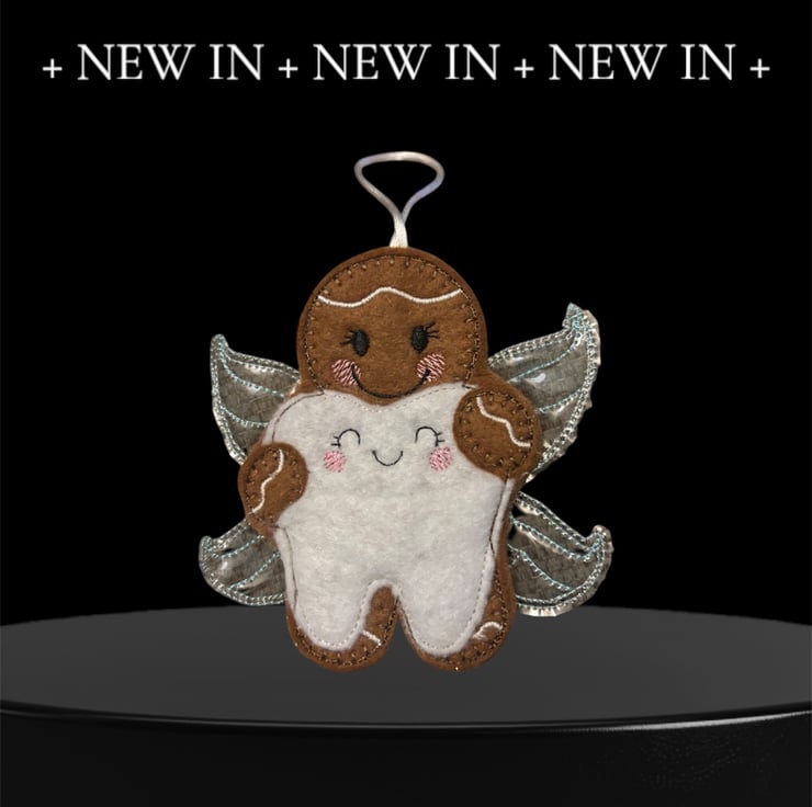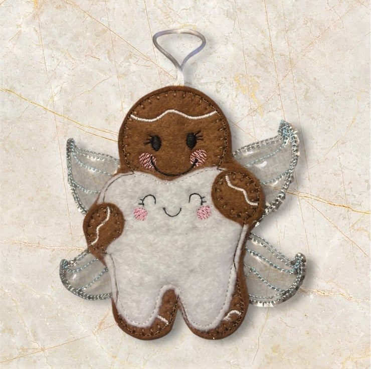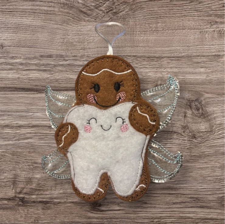 Handmade embroidered gingerbread lady, with a pocket in the front to put a tooth.
