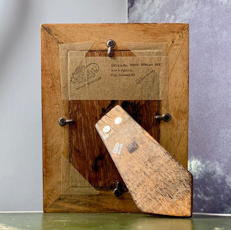 This is one of my original river scene drawings inspired by the Medina River that is close to where I live on the Isle of Wight. The drawing is framed in a beautiful antique frame made from solid wood with metal details in each corner. The complete artwork, including frame, measures 22 x 17 cm (8.5 x 6.5 inches). The frame has a wooden stand on the back so that the artwork can be displayed on a shelf.