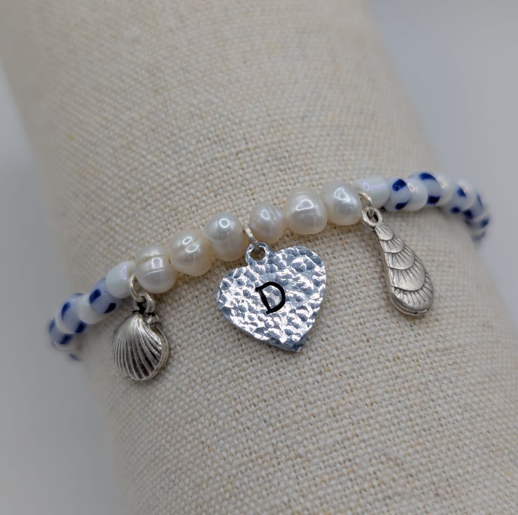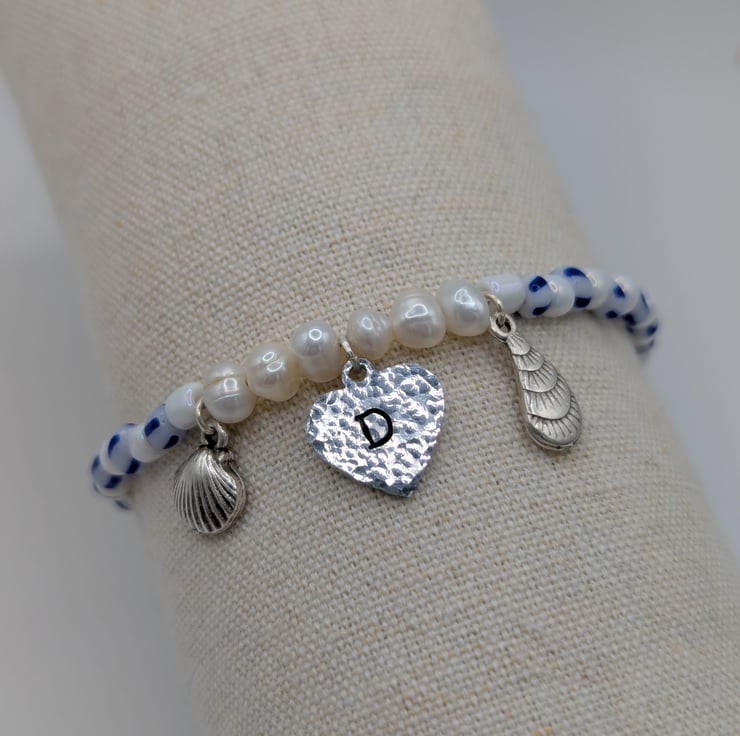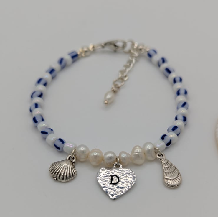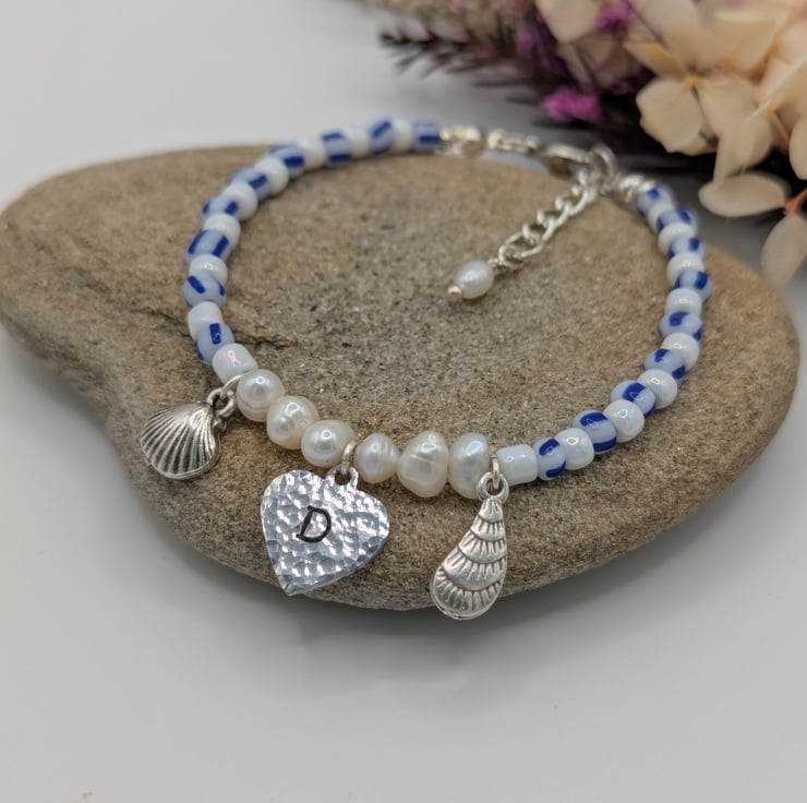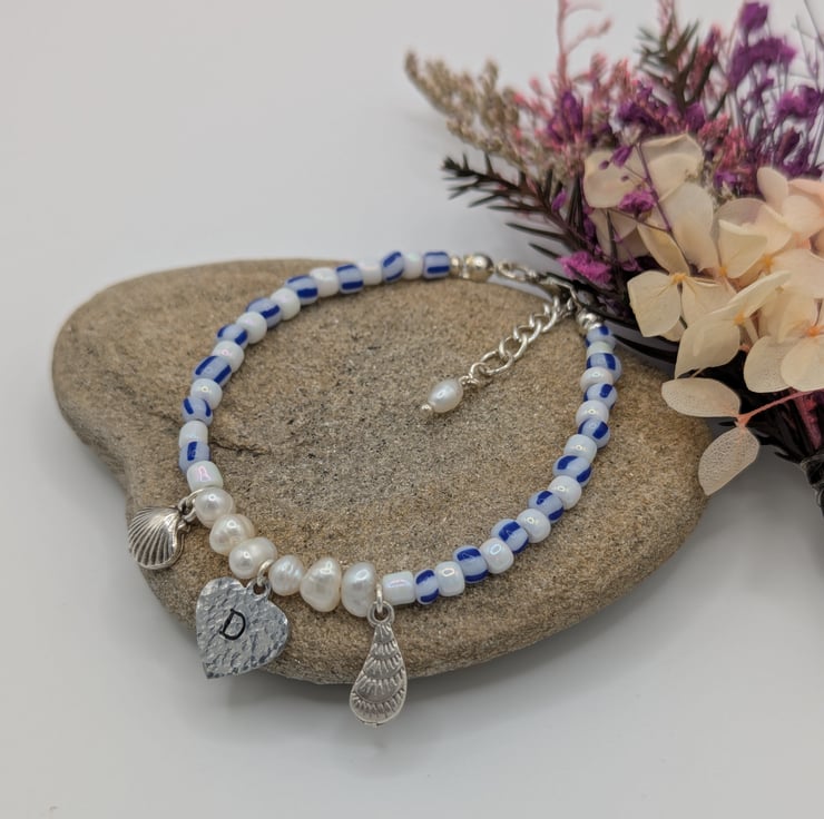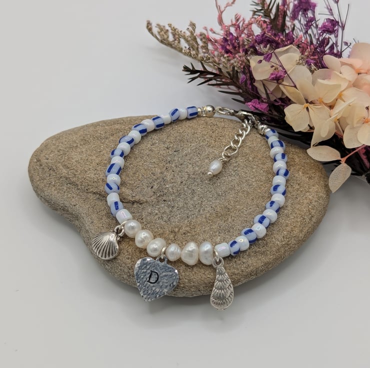 The bracelet also has a hand stamped and hammered heart that can be personalised with the initial or up to three letters of your choice, you can add your choice in the drop down options.