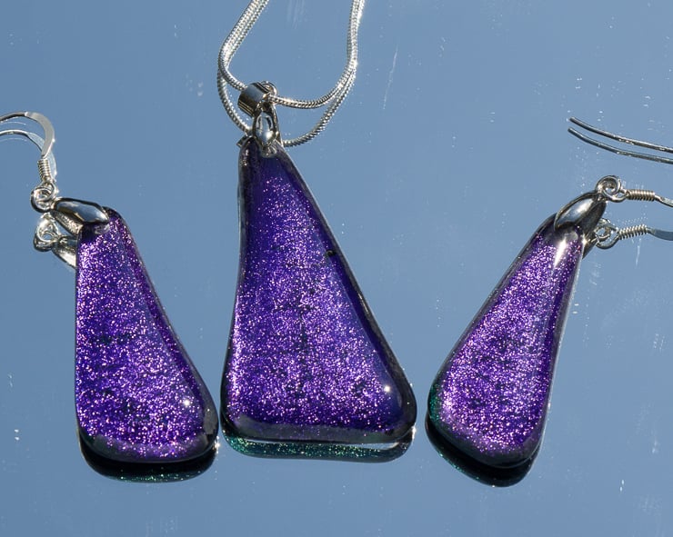 Our Dichroic Glass comes in random shapes of random colours - that's how we buy this expensive glass economically.