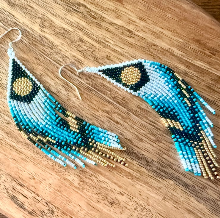 These earrings are Native American inspired and have been made with the smallest Miyuki seed beads available.