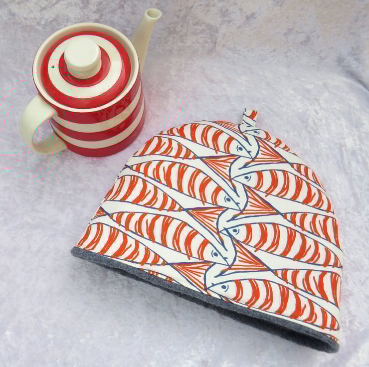 This is a medium sized tea cosy, made to fit a 3-4 cup teapot.