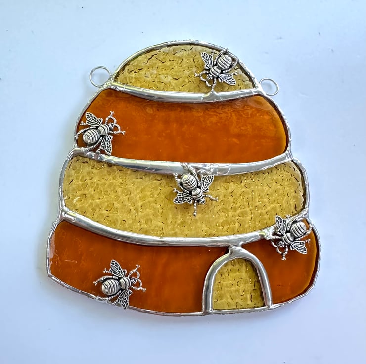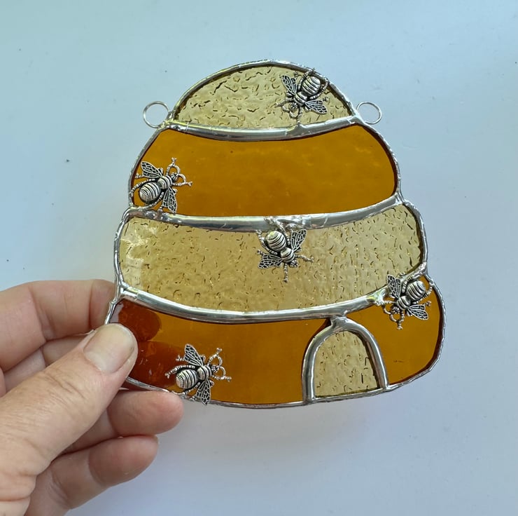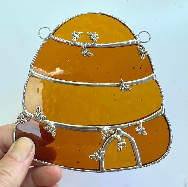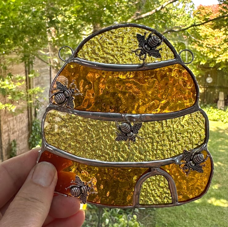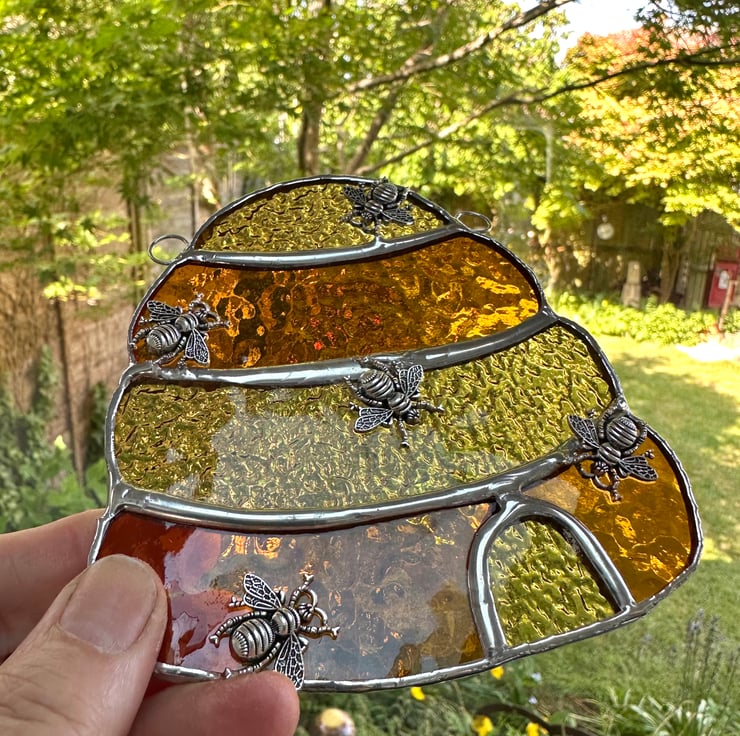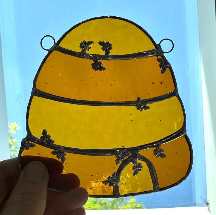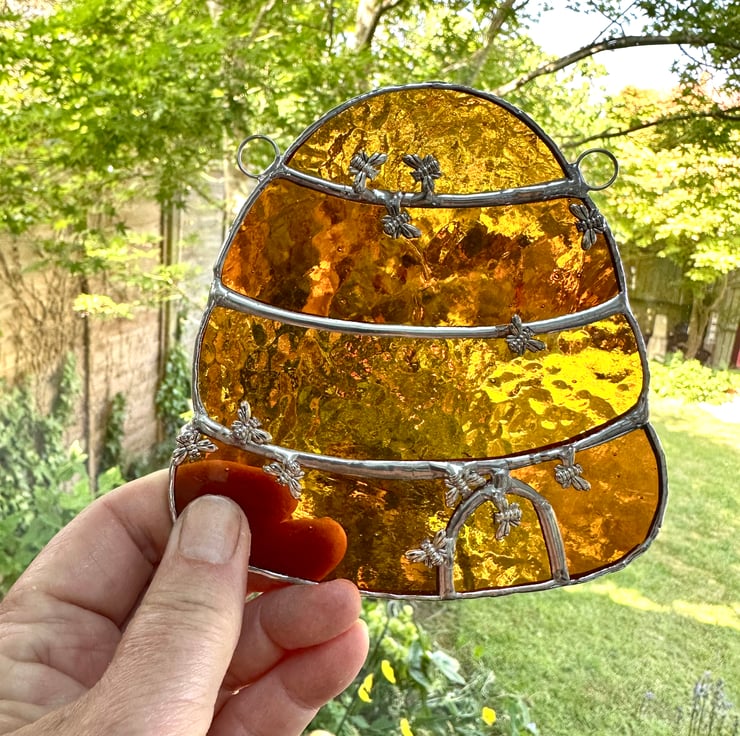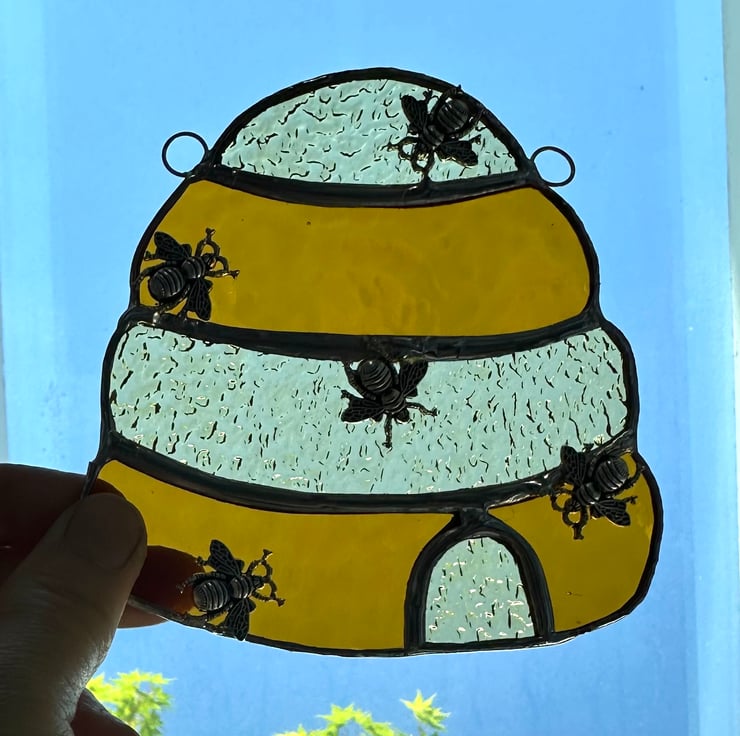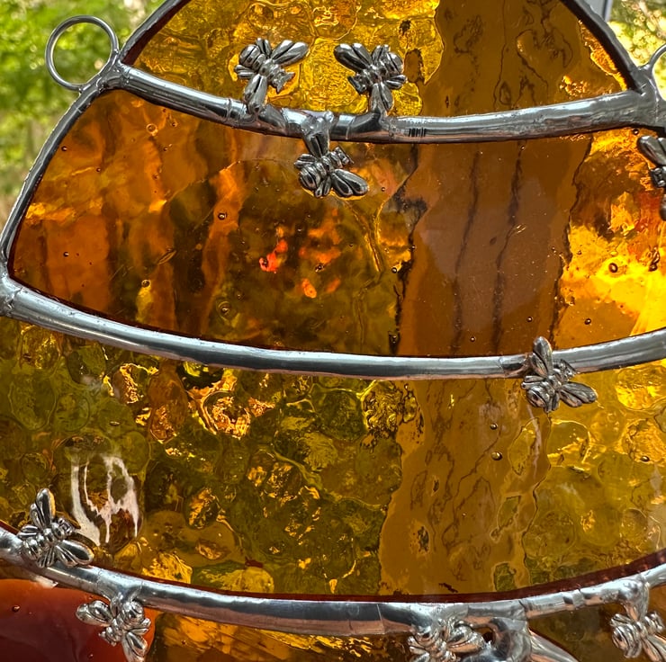Beehive suncatcher made from lovely stained glass by Carole’s Glass.