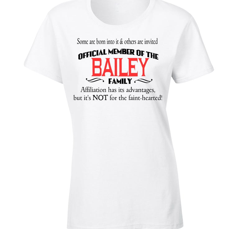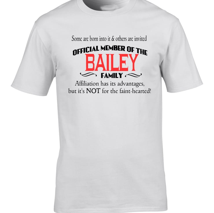 Bailey Surname Men's Lady's T-Shirt Any Name Family Reunion Personalised