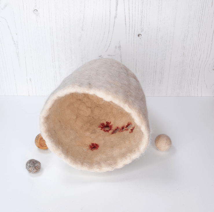 Bring a little warmth and charm to your space with this unique wool pot, handmade in the West Midlands using 100% British wool. Each bowl is crafted by hand using traditional wet-felting techniques, rainwater, and gentle olive soap, no harsh chemicals, just nature and care.