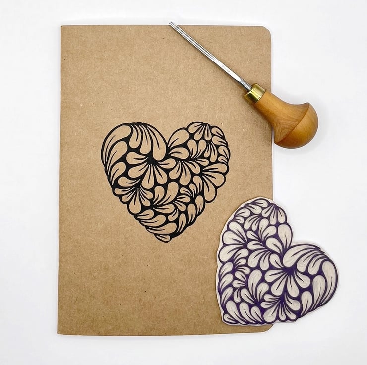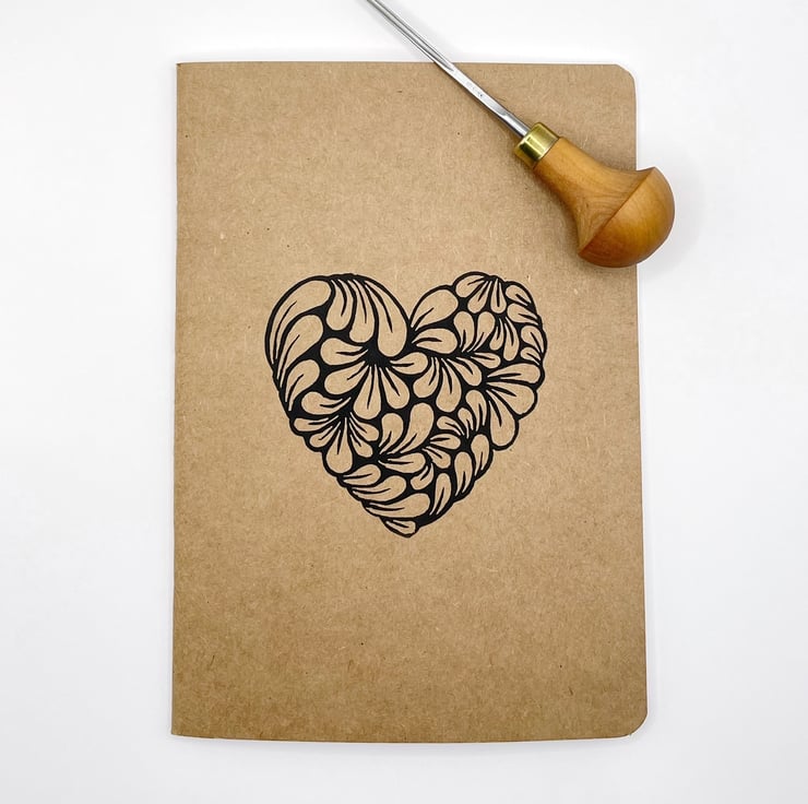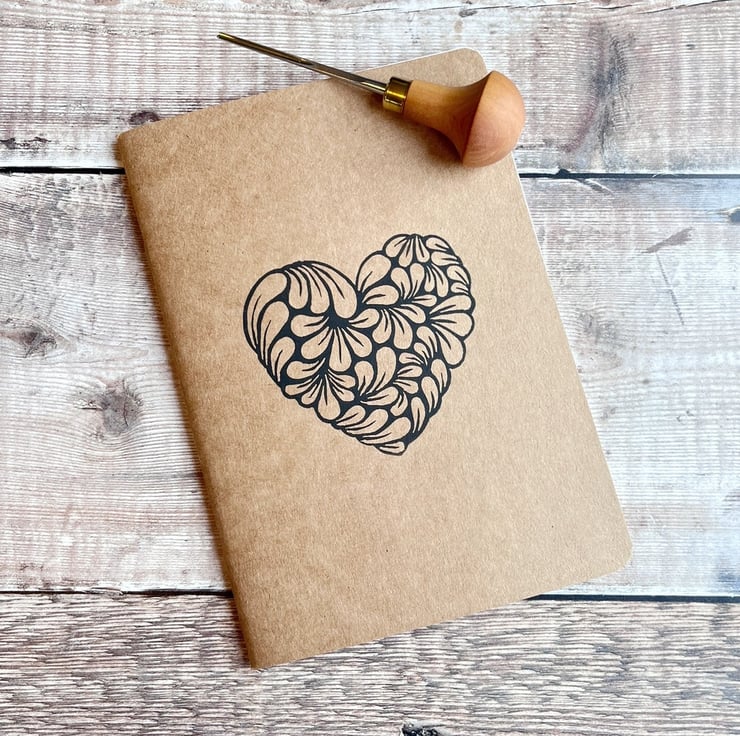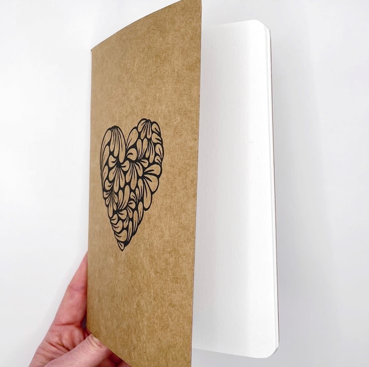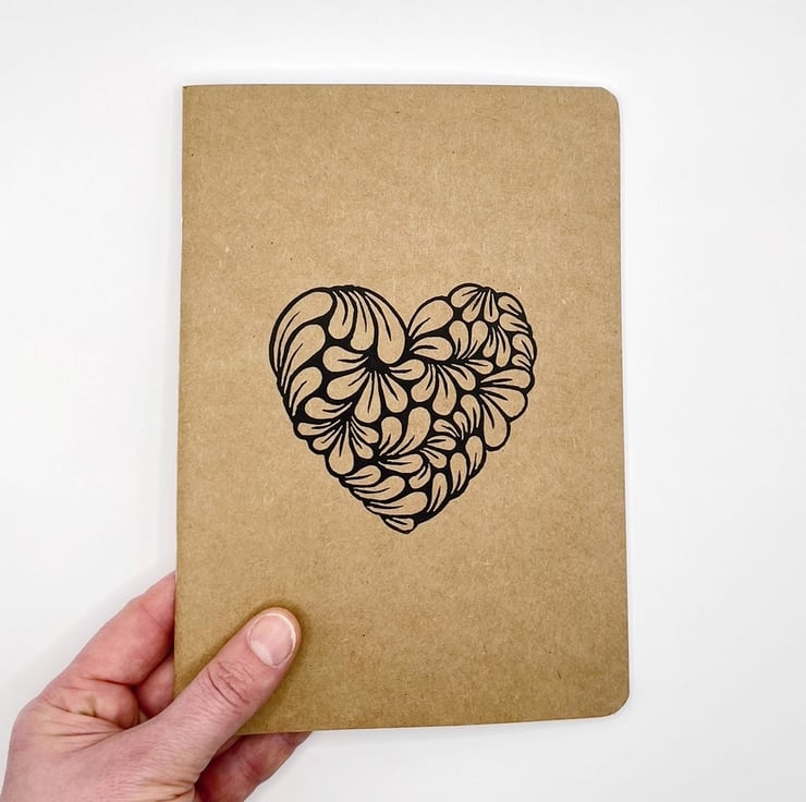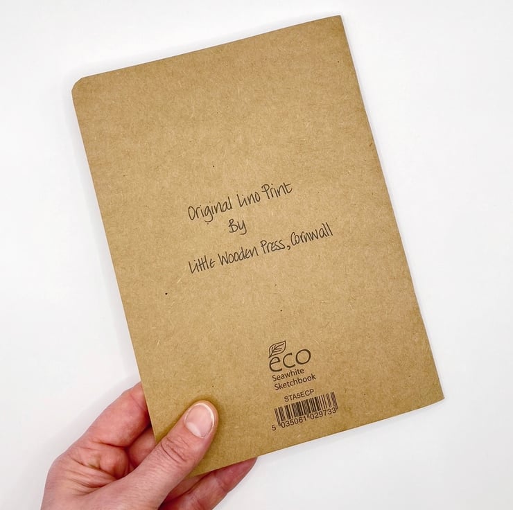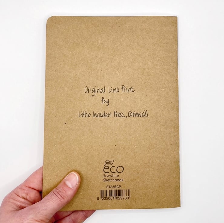 Inspired by clusters of Cornish Mussel shells, I've hand printed this design on to an A5 size Eco Seawhite Sketchbook using black water based ink.