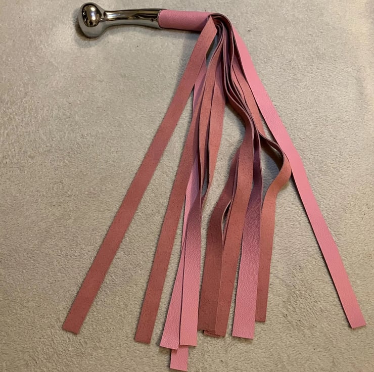 Bubblegum Cotton Candy Pink coloured leather flogger - FREE SHIPPING