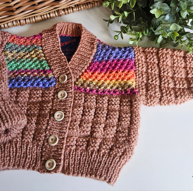 This little cardigan will make a perfect quality gift for a newborn baby boy for those seeking total designer individuality. All new mother's live to receive something extra special for their new arrival. There is nothing more endearing than seeing a baby in a quality hand knitted garment.