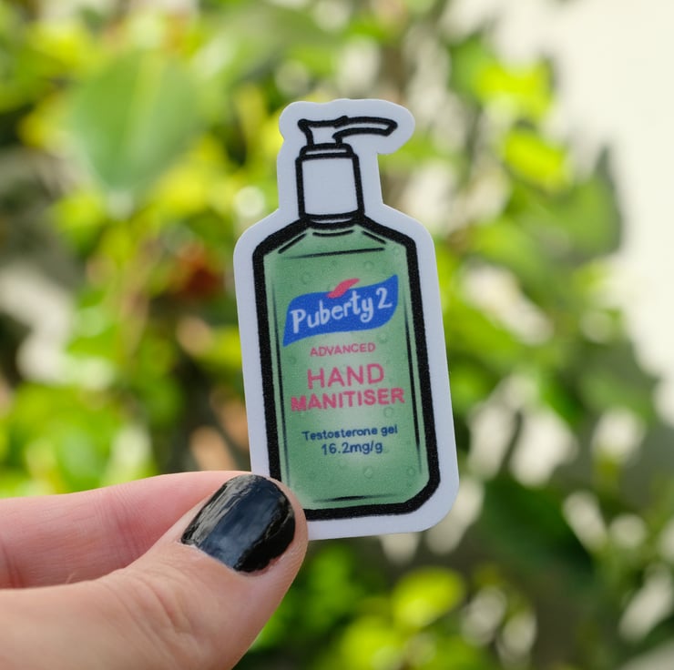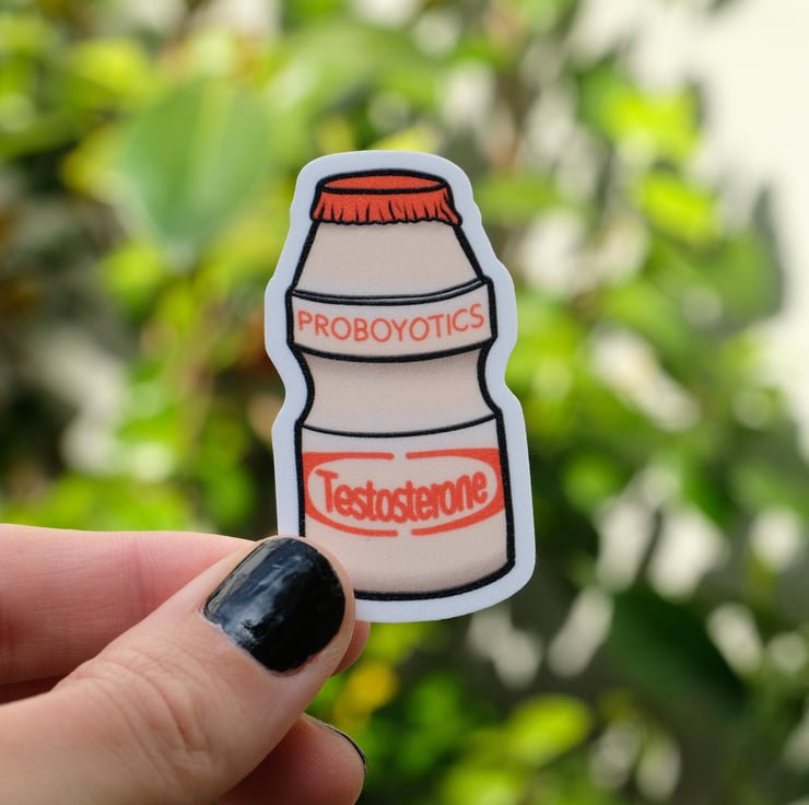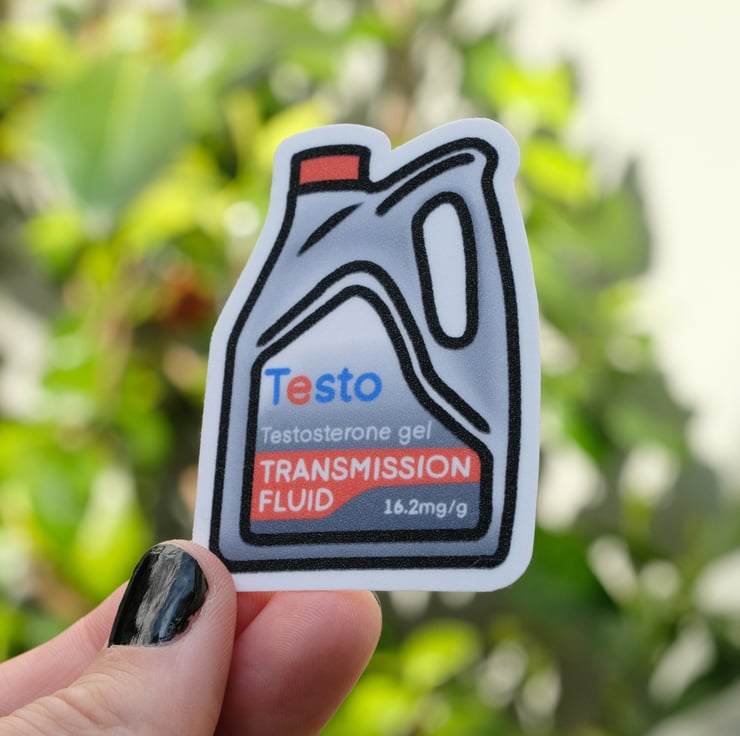 This feral collection of 6 testosterone-themed stickers is perfect for trans guys, masc enbies, himbos-in-training, and anyone whose gender runs on spite and synthetic hormones. Featuring: