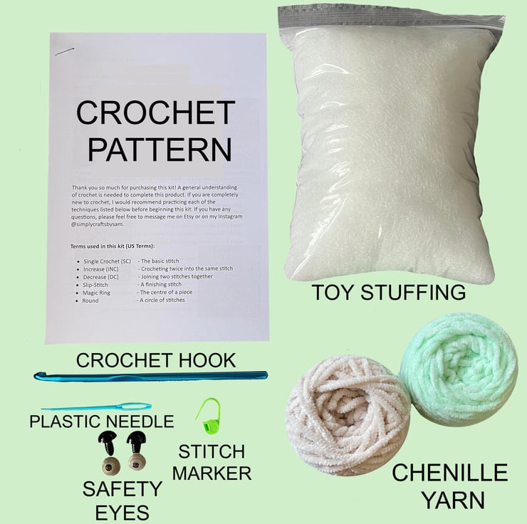 A basic knowledge of crochet is needed to create this product. If you have never crocheted before then fear not as each kit includes beginner friendly video tutorials on each stitch you need to learn in order to crochet this toy. Practise yarn is an available add-on so you can practise these stitches.