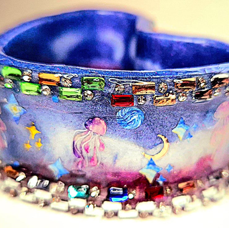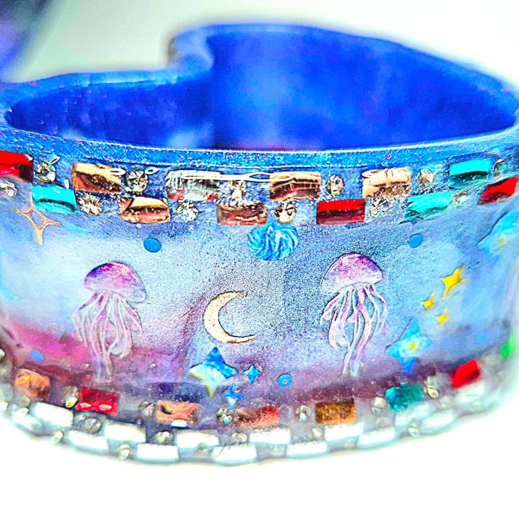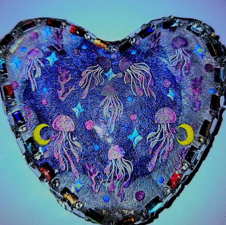 #jellyfish #trinketbox #colourfulfish #silver #turtles ##glowinthedark #artbringsjoy #resinart #helpmybusinessgrow #ilovewhatido #resinpour #resin #crystals #sparkle #magicalmusic #vangogh #starrynight